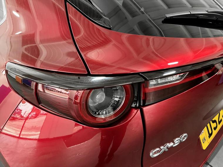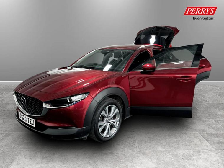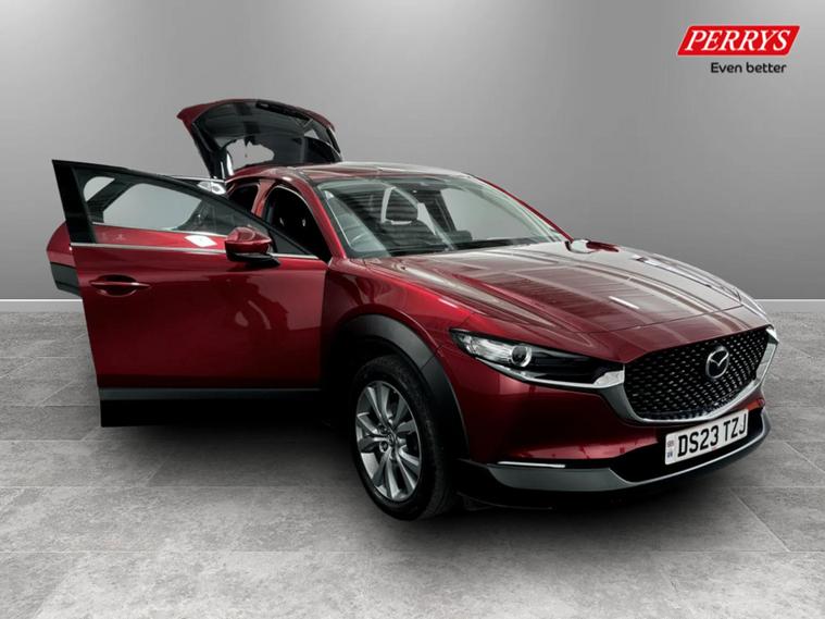 This 2023 Mazda CX-30 e-SKYACTIV G Sport Lux presents an exceptional opportunity with its remarkably low mileage of just 17803 miles for its age. This Euro 6 compliant 2.0L petrol model, registered in 2023, boasts an MOT valid until June 2026, offering peace of mind for the foreseeable future. The Sport Lux trim level comes equipped with a suite of advanced driver aids, including a reversing camera with rear parking assistance, front and rear parking sensors, and blind spot monitoring with rear cross traffic alert. Smart keyless entry adds a layer of convenience to your daily driving experience. The CX-30 e-SKYACTIV G Sport Lux is also noted for its low insurance group, indicating that running costs are likely to be more affordable compared to similar vehicles. These highlights, combined with its comprehensive features and excellent provenance, demonstrate how this Mazda CX-30 stands out as a well maintained and desirable option.