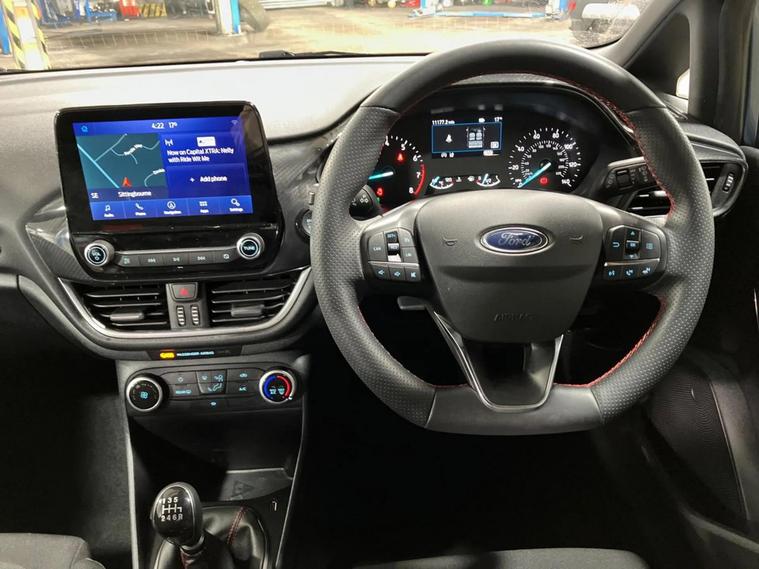 Ford Fiesta ST-Line 1.0 Turbo 100ps 6 Speed Manual finished in Metallic Chrome Blue with 18" Alloys, 2 Keys, 1 Previous Owner, Full Service History: 1st 14/10/2024 at 8202 miles. Features include Sat Nav, Rear Parking Sensors, DAB Radio, Air Conditioning and Bluetooth Mobile Phone Connectivity. A £149 administration fee is applicable to the advertised price upon purchase of this vehicle. Refer to our terms and conditions for details.