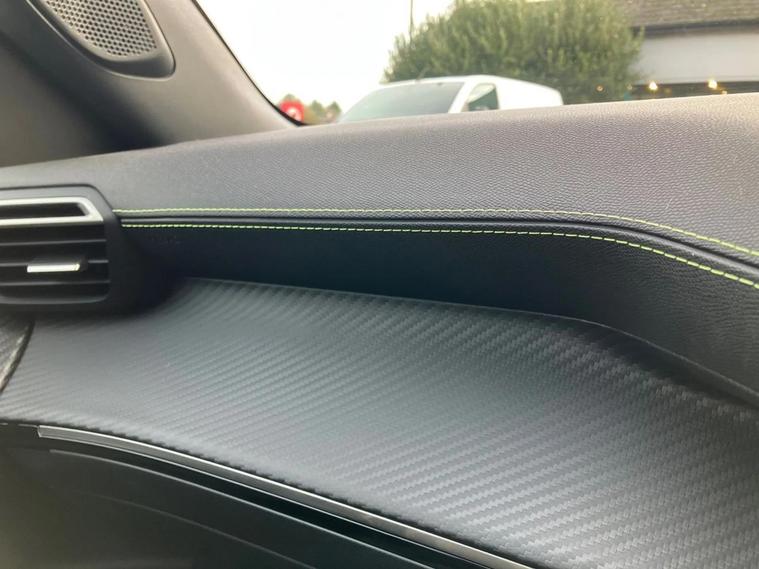 - Mistral full-grain perforated leather steering wheel with Lime Green stitch detail and satin chrome GT emblem