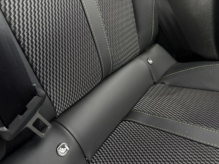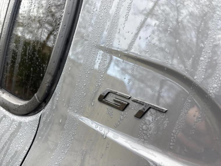 - Multi function full grain perforated leather steering wheel with adamite green stitch detail and GT emblem