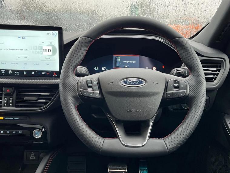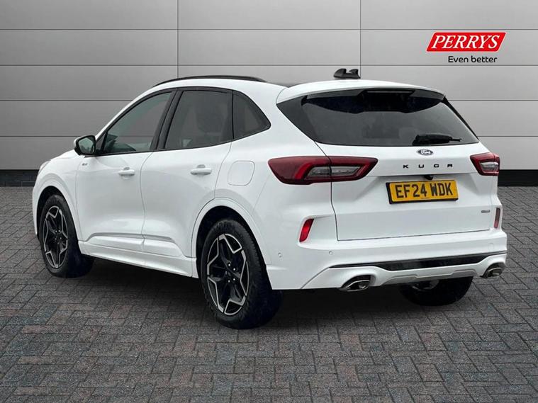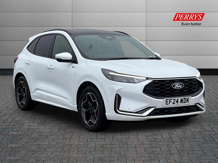 DELIVERY MILES + AS NEW + 180bhp FHEV FULL HYBRID + HEATED STEERING WHEEL + HEATED FRONT AND REAR SEATS + PANORAMIC SUN ROOF + FRONT AND REAR CAMERA +++ This stunning 180bhp ST-Line X FHEV full hybrid has covered only delivery miles and is as new. It comes with a huge list of features, Ford warranty, and 2 keys. Serviced here at Perrys Mansfield in February 2026 @ 558 miles, and with 2yr/18k intervals, the next service will not be due until February 2028 or 19k miles, whichever comes first ++ Self-Charging Hybrid (FHEV) vehicles have two sources of power. They can automatically switch between conventional mode, pure electric mode (for short distances), or use both to power the vehicle as needed. Kuga FHEV has a battery capacity of 1.1kW which allows short term electric propulsion, a great combination between power and fuel efficiency, whilst reducing the CO2 footprint compared to a conventional engine. There?s no need to plug in your vehicle for charging. Hybrid vehicles can recharge the battery in two ways: 1) regenerative braking, 2) Conventional engine. The conventional engine powers the generator which transforms mechanical energy into electrical energy to charge the battery. It also uses regenerative braking to charge the battery. While braking, the motor is still spinning even though the car is trying to slow down. Regenerative braking captures this typically wasted energy to create electricity, which charges the battery. +++