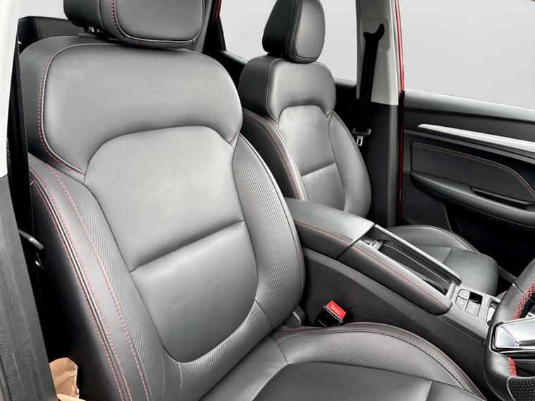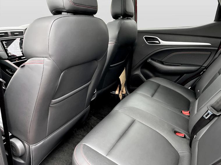 - Leather upholstery with contrast stitching