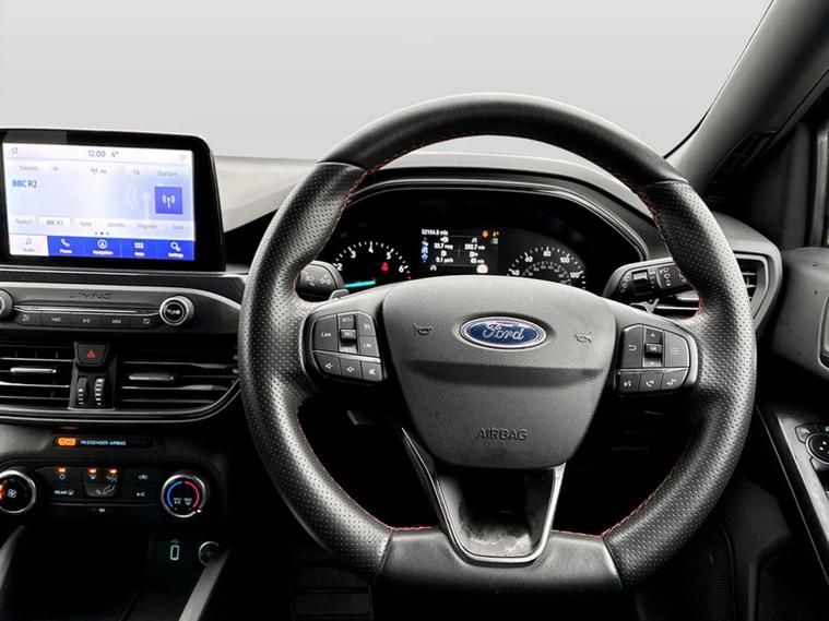 FULL PERRYS SERVICE HISTORY + SYNC 3 TOUCH SCREEN SAT NAV WITH MULTI MEDIA + FRONT AND REAR PARKING SENSORS + REAR PRIVACY GLASS +++ This Focus ST-Line automatic was previously supplied by ourselves and has just been taken in part exchange. Just 2 owners, the previous keeper has had the car since September 2020. The car has been exceptionally well maintained and comes with a full Perrys service history, 2 keys, and this car also has £1775 worth of factory options fitted including Ford Sync 3 Sat Nav, Front and Rear Parking Sensors, and Rear Privacy Glass. Serviced here at Perrys in November 2020 @ 10k miles, Aug 21 @ 15k, July 23 @ 28k, June 25 @ 46k, and with 2yr/18k intervals, the next service will not be due until June 2027 or 64k miles, whichever comes first ++++