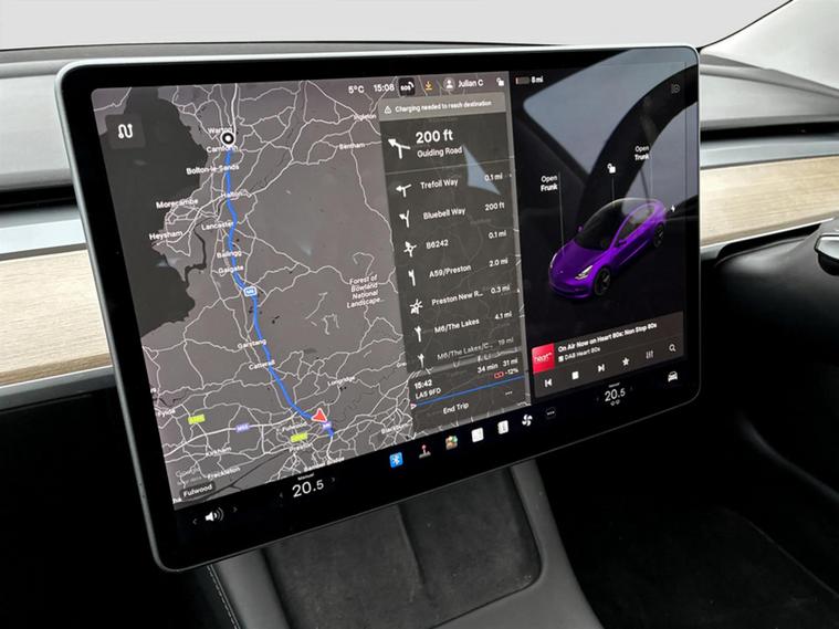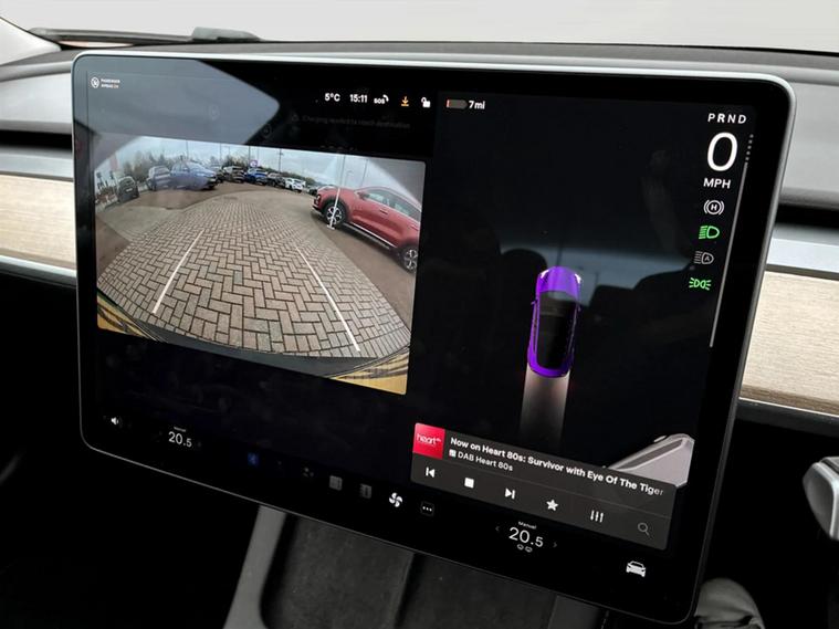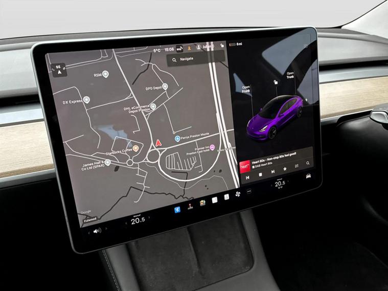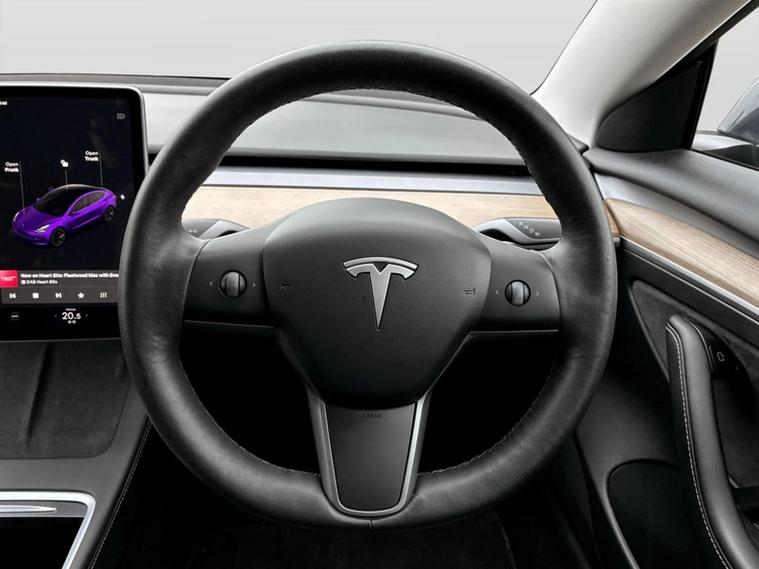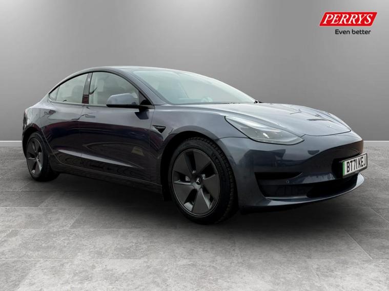 2021 Tesla Model 3. As an electric vehicle, it features a 53 kWh battery with a maximum range of 278 miles, charging to 80% on a public charger can be achieved in just 29 minutes. This Model 3 also comes equipped with LED headlights, front and rear parking sensors for easier manoeuvring, and adaptive cruise control for a more relaxed driving experience. Inside, you'll find a 2 zone climate control system to keep all occupants comfortable. The generous boot space provides ample room for luggage or shopping, making it a practical choice for everyday use and longer journeys. The combination of its electric powertrain, impressive range, and convenient charging options, alongside its useful features, positions this Model 3 as a compelling option in the electric car market.