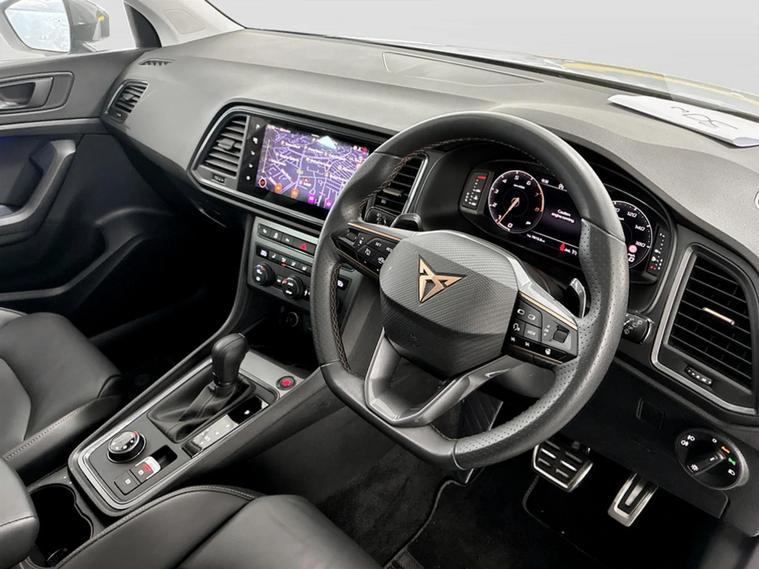 This 2025 CUPRA Ateca EcoTSI V2 is a superb example, having been cherished by just one owner since new. This four wheel drive petrol SUV boasts a powerful 2.0 litre engine and meets Euro 6 emission standards, ensuring efficient performance. For your peace of mind, the MOT is valid until July 2028. Inside, you'll find a host of desirable features including a heated steering wheel, heated front seats for those chilly mornings, and keyless entry for effortless access. Stay connected and powered up with the wireless phone charger, and navigate tight spots with ease thanks to the rear view camera. The CUPRA Ateca EcoTSI V2 offers an exhilarating driving experience, accelerating from 0 to 62mph in a swift 7.2 seconds, a performance that sets it apart from many other vehicles in its class. This impressive acceleration, combined with its four wheel drive capability, provides a dynamic and engaging drive. Furthermore, the generous boot space ensures you have ample room for all your luggage, shopping, or equipment, making it a practical choice for both daily commutes and longer journeys.