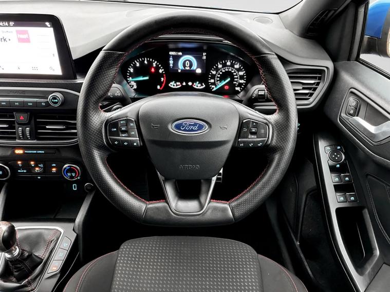This 2019 Ford Focus ST Line presents an exceptional ownership proposition with a mere 42, 822 miles on the clock, having been cherished by just one owner from new. Powered by an efficient 1.0 litre petrol engine, this Euro 6 compliant model combines responsive performance with a manual air conditioning system to ensure comfort on every journey. Its ST Line trim level signifies a sporty aesthetic and engaging driving experience, all within a practical hatchback body offering generous boot space for all your needs. The Ford Focus ST Line stands out with its impressive acceleration, reaching 0 to 62 miles per hour in just 10.0 seconds, demonstrating its lively performance. Furthermore, its low CO2 emissions indicate a more environmentally conscious choice compared to many other vehicles in its class. These factors, combined with its low mileage and single owner history, make this particular Ford Focus a compelling option for those seeking a well maintained and enjoyable car.