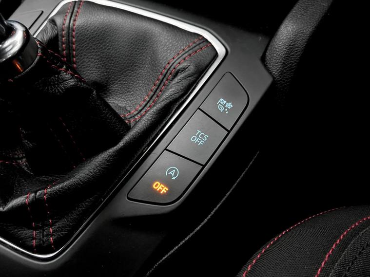 - 3 spoke flat bottomed leather steering wheel with red stitching