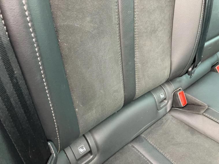 - Satin black microsuede with grey stitching in padded dash panel