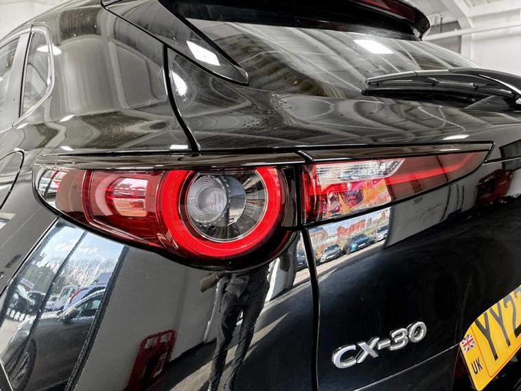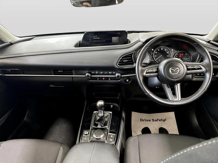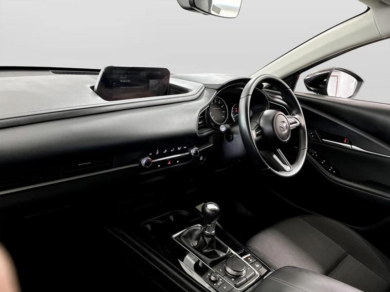 This 2023 Mazda CX-30 e-SKYACTIV G SE-L boasts exceptionally low mileage for its age, having covered just 10, 547 miles and will have 12months MOT with no advisories for you peace of mind. This stylish SUV features a 2.0L petrol engine and meets Euro 6 emissions standards. The SE-L trim comes equipped with Blind Spot Monitoring, including Rear Cross Traffic Alert and Blind Spot Assistance, alongside manual air conditioning for your comfort. With its impressive fuel economy of 48 mpg and low CO2 emissions, this CX-30 offers an economical driving experience. Furthermore, its low insurance group rating indicates that running costs are kept to a minimum, making it a sensible choice compared to similar vehicles.