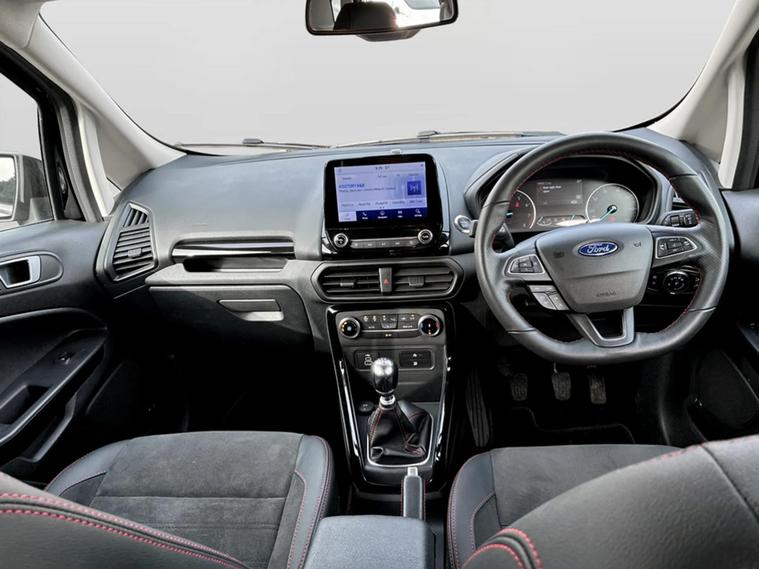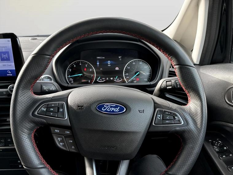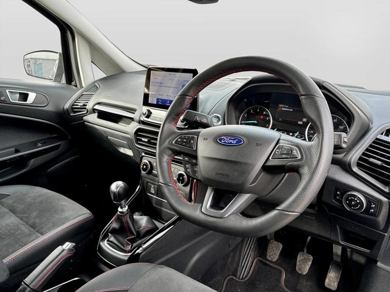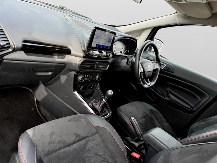 This 2023 Ford EcoSport T ST-Line presents an exceptional ownership proposition with its remarkably low mileage of just 19801 miles, a testament to its careful single owner. This Euro 6 compliant 1.0L petrol model boasts a full dealership service history, with its last service completed on 26 February 2026 at 19451 miles, and benefits from an MOT valid until December 2026. The ST-Line trim is further enhanced by the X-Pack, which includes convenient keyless entry and a premium branded sound system, alongside striking 18in Shadow Black machined finish alloy wheels, automatic headlights, and rear parking sensors for added ease. You can expect impressive efficiency from this EcoSport, with a highlighted fuel economy of 46 mpg, and its low CO2 emissions also set it apart from many other vehicles in its class. These factors, combined with the comprehensive provenance and desirable features, indicate that this particular Ford EcoSport offers a superior ownership experience. A 3-month warranty is also included, providing further peace of mind.