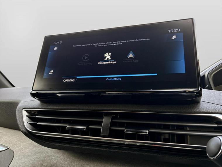 - Peugeot i-cockpit with configurable 12.3 headup digital instrumental panel and compact sports steering wheel