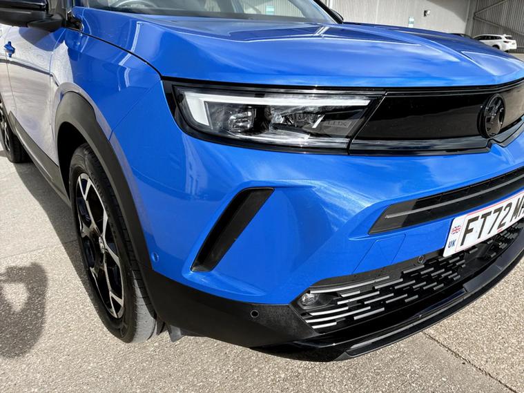 This 2023 Vauxhall Mokka Turbo Ultimate boasts exceptionally low mileage for its age, having covered just 11875 miles. This Euro 6 compliant 1.2 litre petrol model comes in the top of the range Ultimate trim, offering a sophisticated driving experience. It features keyless entry and start for effortless access, alongside automatic lighting control with tunnel detection to ensure optimal visibility. For added convenience and safety, it includes heated front seats, a panoramic rear view camera for enhanced parking assistance, and side blind spot alert with flank guard. The MOT is valid until December 2026, providing peace of mind. The Vauxhall Mokka Turbo Ultimate delivers impressive performance and efficiency. Its 0-60mph acceleration in just 9.2 seconds demonstrates its responsive nature, while a fuel economy of 48 mpg highlights its cost effectiveness. Furthermore, its low CO2 emissions make it a more environmentally conscious choice compared to many other vehicles in its class. These highlights collectively indicate a vehicle that offers a superior blend of performance, economy, and advanced features.