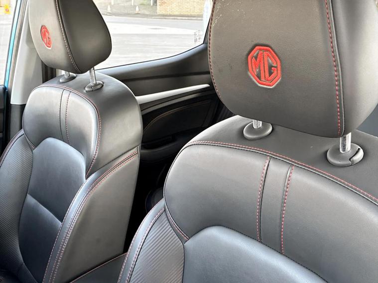 - Leather upholstery with contrast stitching