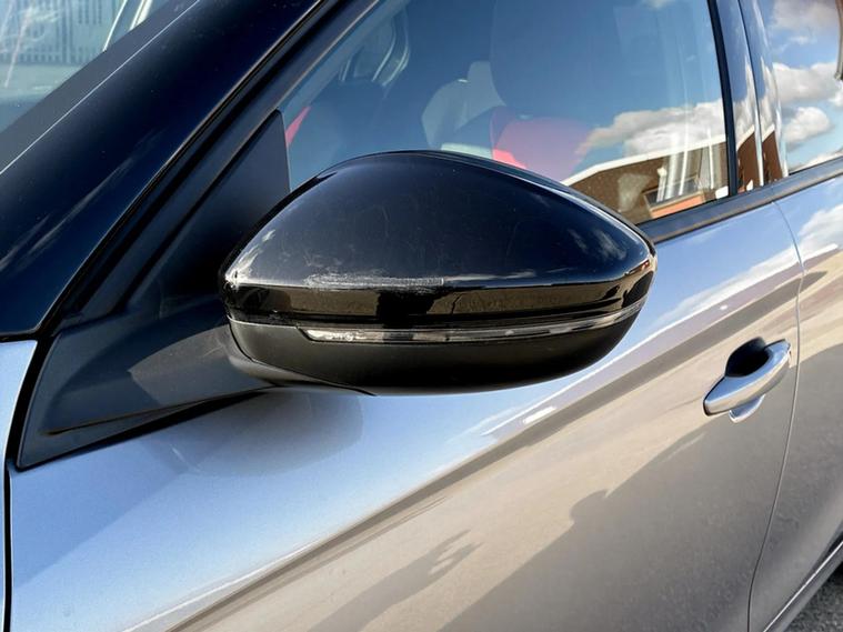 - 3 spoke flat bottomed leather effect steering wheel with satin chrome effect bezel