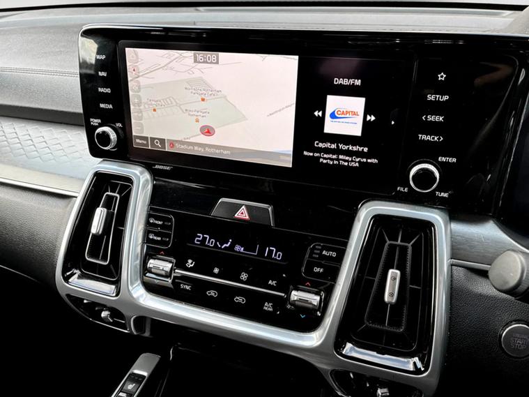 This 2023 Kia Sorento CRDi Edition offers excellent peace of mind with its MOT valid until September 2026. This Euro 6 compliant, seven seat SUV is powered by a robust 2.2 litre diesel engine and features a capable four wheel drive system, making it well suited for a variety of journeys. The Edition trim level ensures a premium experience, enhanced by a Bose Premium Sound System with 12 speakers, a heated steering wheel, and heated front seats for ultimate comfort. Navigating tight spaces is made effortless with the 360 Degree Around View Monitor and front parking sensors. With a substantial towing weight of 2500 kg and generous boot space, this Sorento is designed for practicality and adventure. The inclusion of features like the Bose sound system and the around view monitor clearly sets this vehicle apart, offering a more refined and convenient ownership experience compared to other SUVs in its class.