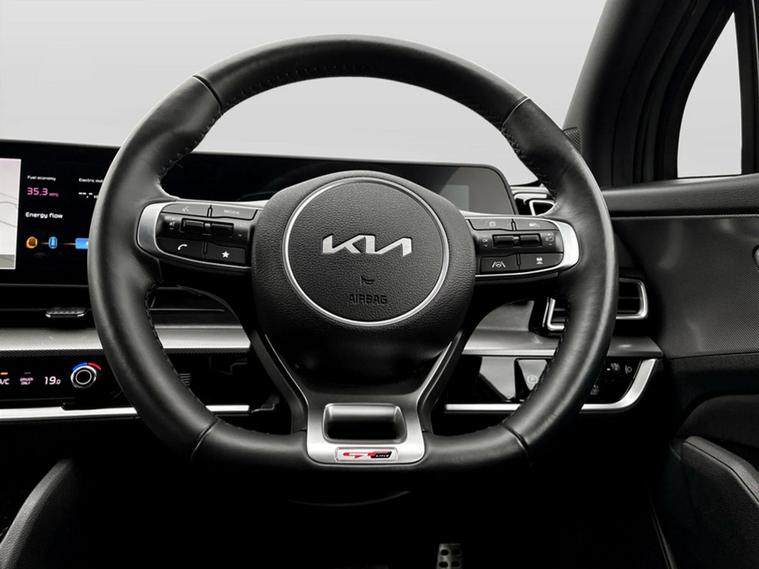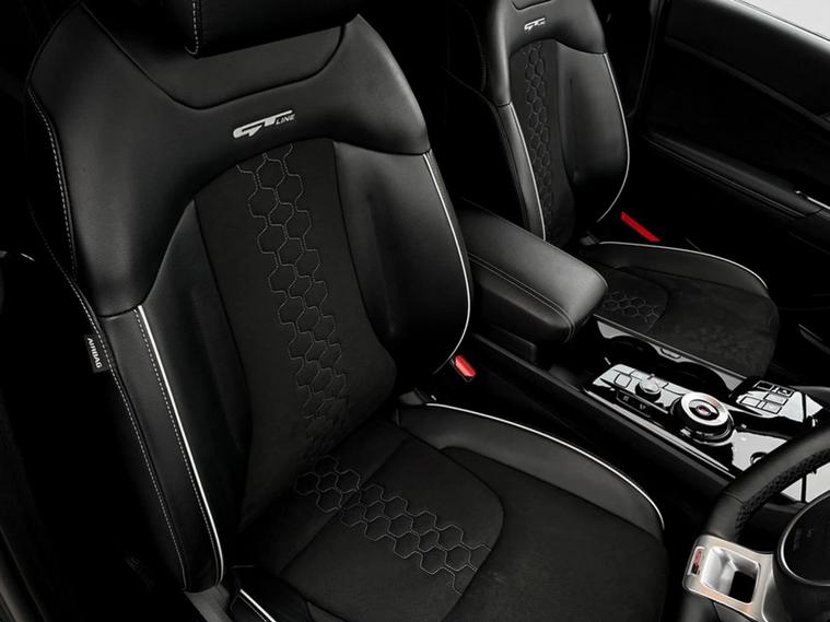 - D-Shaped sports leather steering wheel and perforated inserts with GT-Line logo