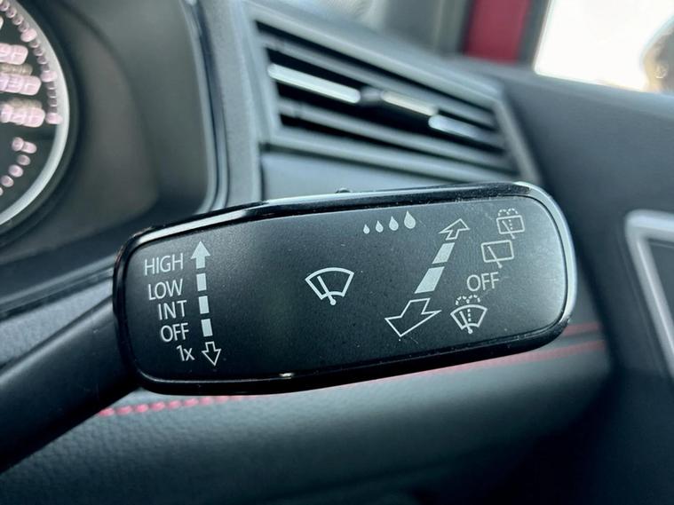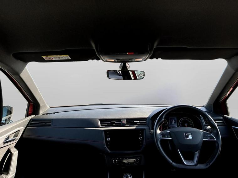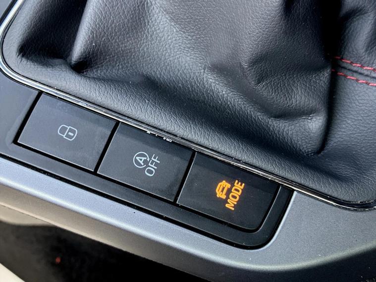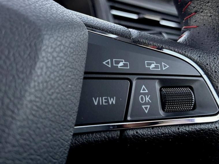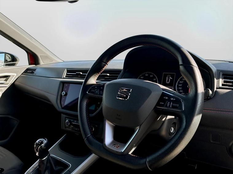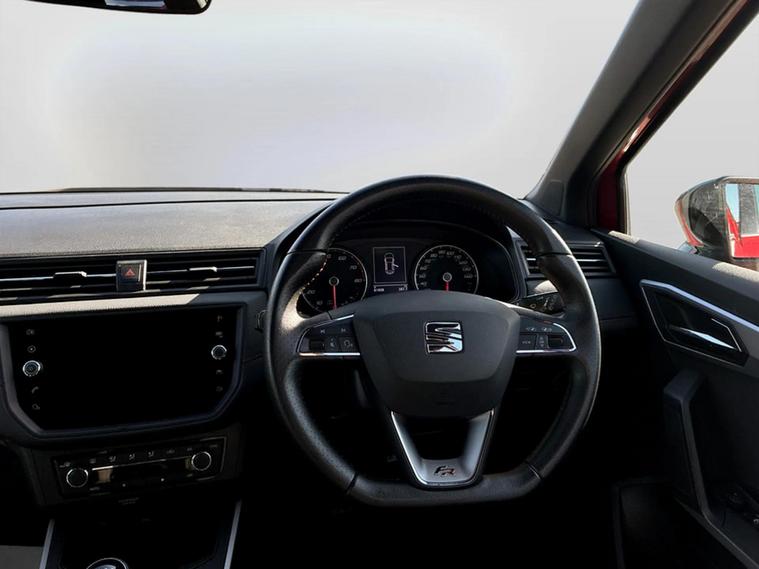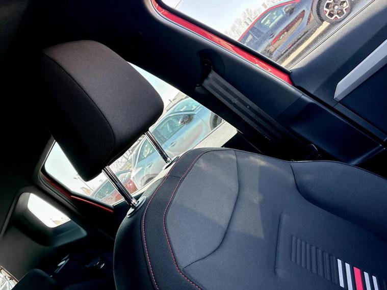 - Perforated flat bottomed leather steering wheel/gear knob/handbrake with red stitching and FR logo