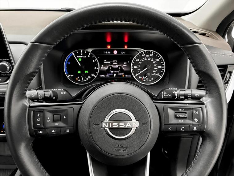 This 2023 Nissan X-Trail h e-POWER Acenta Premium boasts an MOT valid until December 2026, offering peace of mind for years to come. This Euro 6 compliant model features a responsive 1.5 litre petrol hybrid engine, combining efficiency with performance. The Acenta Premium trim level comes equipped with advanced safety and convenience features, including Blind Spot Warning with Intelligent Blind Spot Intervention, ensuring greater awareness on the road. You'll also find helpful LED headlights for improved visibility, front and rear parking sensors to assist with manoeuvring, and a convenient wireless charging pad for your mobile devices. Experience impressive acceleration with a 0-62mph time of just 8.0 seconds, demonstrating the dynamic capability of this hybrid powertrain. The Nissan X-Trail also offers generous boot space, making it a practical choice for families and those who need ample room for luggage or shopping. These highlights, such as the advanced driver assistance systems and the efficient yet powerful hybrid engine, position this X-Trail as a compelling option within its class, offering a refined and capable driving experience. Previously serviced on 14/2/2024 at 13, 531 miles, 24/1/2025 at 25, 021 miles and it will be fully inspected by our qualified vehicle technicians on site. With 2 keys.