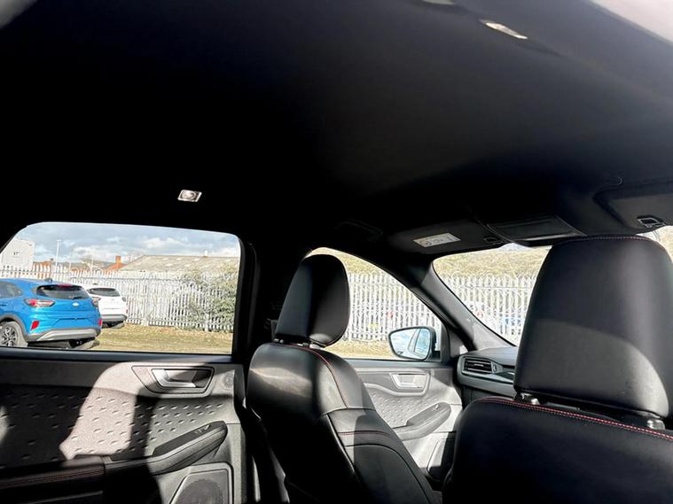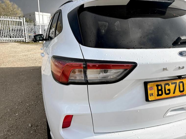 Discover this exceptional 2021 Ford Kuga ST-Line Edition, boasting an incredibly low mileage of just 4100 miles, making it a truly outstanding find for its age. This stylish ST-Line Edition variant is equipped with a responsive 1.5 Turbo Diesel Engine, meeting Euro 6 emission standards. For added convenience and confidence, it features Front and Rear Parking Sensors, a Rear View Camera, and Steering Wheel Mounted Paddle Shifts, enhancing your driving experience. Further enhancing its appeal, this Kuga also comes equipped with Navigation System, Automatic Headlight Activation, Digital Instrument Cluster, Apple CarPlay, DAB Radio, LED Lights, Heated Front Windscreen, Hands Free Power Tailgate, Privacy Glass, Keyless Start, Alloy Wheels, Alarm and Immobiliser, Part Leather Sports seats and Selectable drive modes which are all outstanding features! Not only does this single ownership vehicle have many great features, it also comes with a full service history. These cars only require servicing every 2 years or 18000 miles. This car had its first 24 Months Service in February 2023 at 1, 349 miles and its second 48 month service in January 2025 at 2, 014 miles. The Next service is due in January 2027 or 20014 miles (whichever comes first). This Ford Kuga stands out with its impressive fuel economy, achieving up to 53 mpg, which indicates it is more economical than many similar vehicles. Furthermore, its low insurance group and low CO2 emissions highlight its cost effectiveness and...