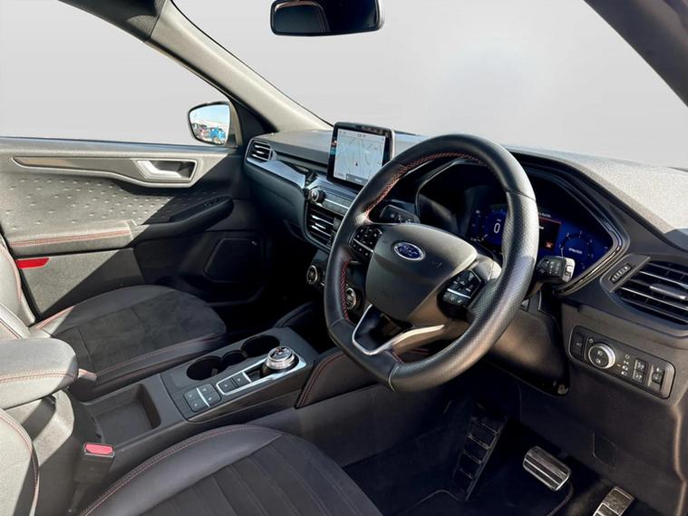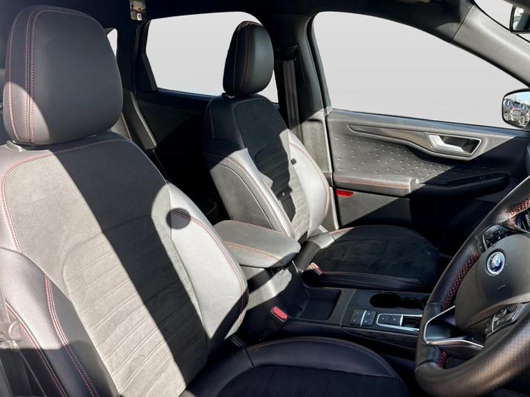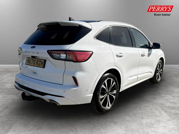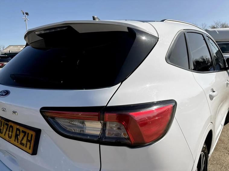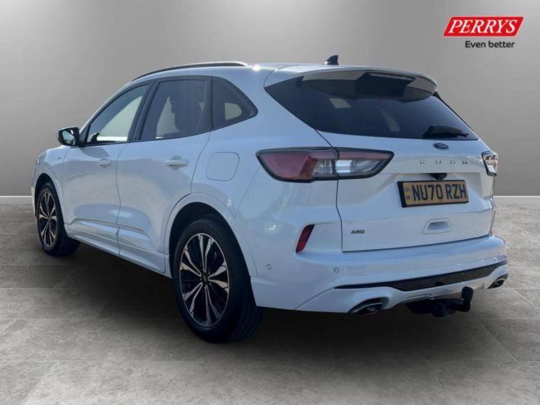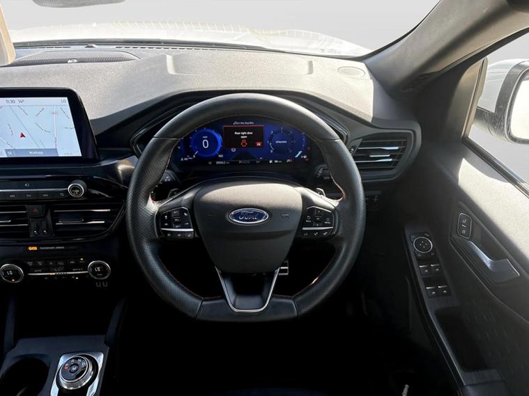 This one owner 2020 Ford Kuga ST-Line X Edition Automatic boasts exceptionally low mileage for its age, having covered just 33, 521 miles. This four wheel drive, 2.0 litre turbo diesel model meets Euro 6 emissions standards. Inside, you'll find a host of desirable features including heated front and rear seats and a heated steering wheel for added comfort, alongside a power opening panoramic roof that floods the cabin with light. Parking is made simple with front and rear parking sensors and a rear view camera, further enhanced by the parking assistance systems. Further enhancing its appeal, this Kuga has features that make it stand out well above others in its class with its powerlift tailgate designed to enhance convenience, especially when hands are full, by eliminating the need to physically lift or pull down heavy tailgates. To extend the convivence of this vehicle even more it comes with Wireless mobile phone charging, Selectable drive modes, Privacy glass, Auto headlamps with high and low beam, Quick clear heated front windscreen, 10 way power adjustable drivers seat, Intelligent speed assist, Ford easy fuel and Active lane keep assist. The Kuga ST-Line X Edition offers impressive performance, accelerating from 0 to 62 miles per hour in just 8.7 seconds, a highlight that shows its capability compared to similar vehicles. Its fuel economy is also a significant advantage, achieving up to 48 miles per gallon, which is better than many alternatives. Furthermore, this mode...