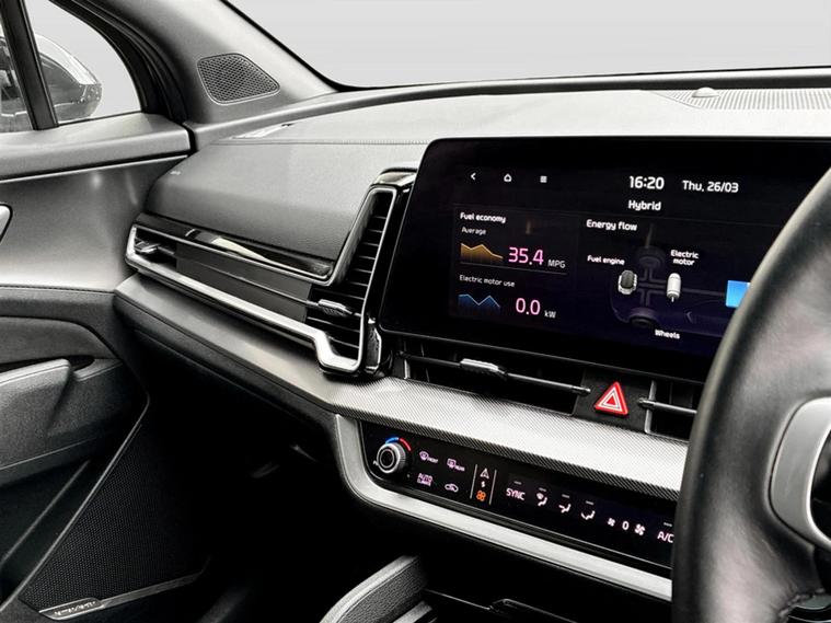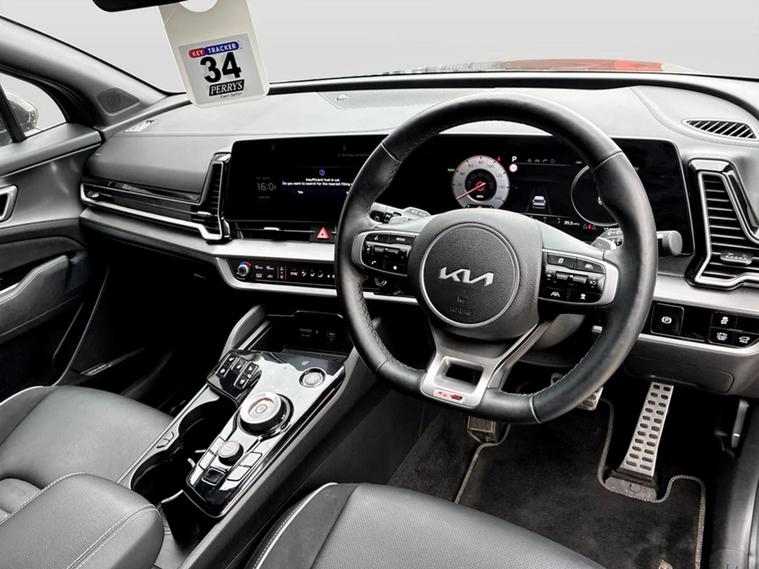 This 2024 Kia Sportage GT Line S h T GDi is a superb example, having had only one owner since new. This stylish SUV boasts a 1.6 litre petrol hybrid engine, paired with a Four Wheel Drive drivetrain for confident handling in all conditions. It meets Euro 6 emission standards, and its MOT is valid until May 2027, offering peace of mind for the foreseeable future. The GT Line S trim level comes equipped with a host of desirable features, including a panoramic sunroof with tilting and sliding function and an electric blind, a 360 degree around view monitor for effortless parking, and a heated steering wheel for added comfort. Dual LED headlights with adaptive driving beam ensure excellent visibility, while front and rear parking sensors make manoeuvring simple. Experience the impressive performance of this Sportage, capable of accelerating from 0 to 62mph in just 8.7 seconds, a testament to its dynamic hybrid powertrain. The generous boot space provides ample room for all your luggage and shopping needs, making it a practical choice for families and adventurers alike. These highlights, such as the advanced 360 degree camera system and the responsive acceleration, demonstrate how this Kia Sportage GT Line S offers a superior driving experience compared to many other vehicles in its class.