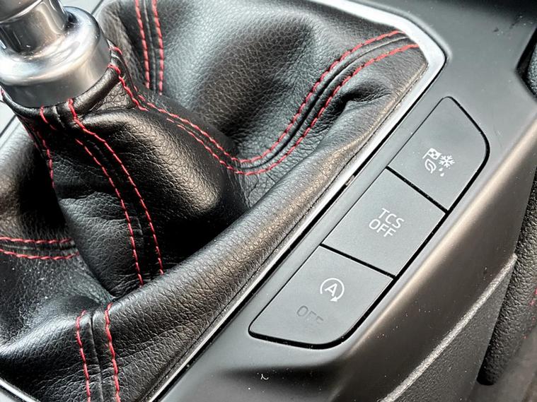 - Front and rear floor mats with red stitching