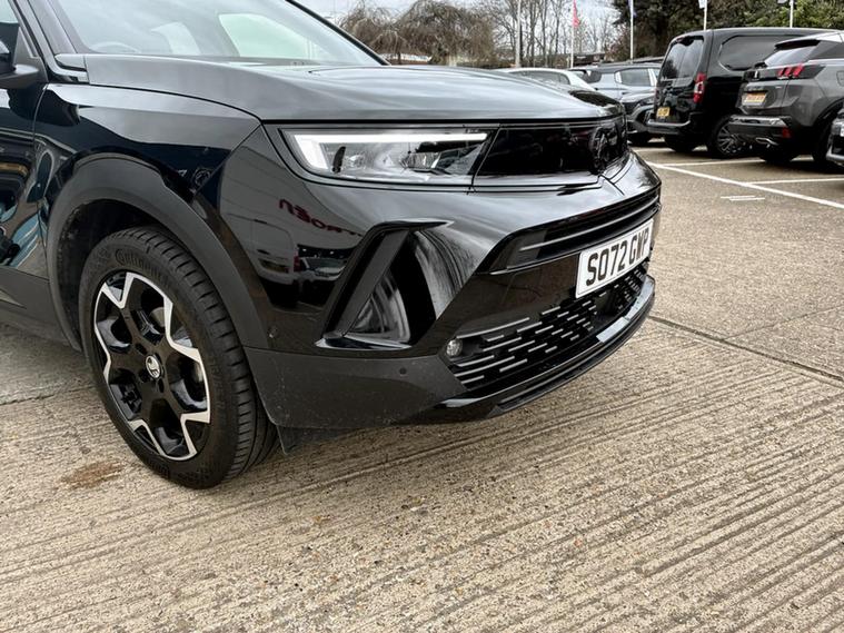 This 2023 Vauxhall Mokka Turbo Ultimate boasts an MOT valid until December 2026, offering excellent peace of mind. This stylish Euro 6 compliant model is powered by an efficient 1.2 litre petrol engine and features a host of desirable equipment. Inside, you will find heated front seats for comfort, keyless entry and start for convenience, and automatic lighting control with tunnel detection. For easier manoeuvring, it includes front and rear parking distance sensors with parking assistance, while the side blind spot alert and flank guard provide an extra layer of safety. The Mokka Turbo Ultimate delivers an impressive fuel economy of 48 miles per gallon, making it an economical choice. Its low CO2 emissions further contribute to its environmental credentials. Demonstrating its responsive performance, this vehicle accelerates from 0 to 60 miles per hour in just 9.2 seconds. These highlights indicate that this Vauxhall Mokka offers a superior driving experience compared to other vehicles in its class, combining efficiency, performance, and advanced technology.