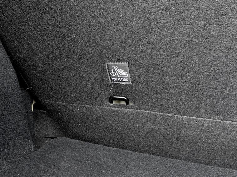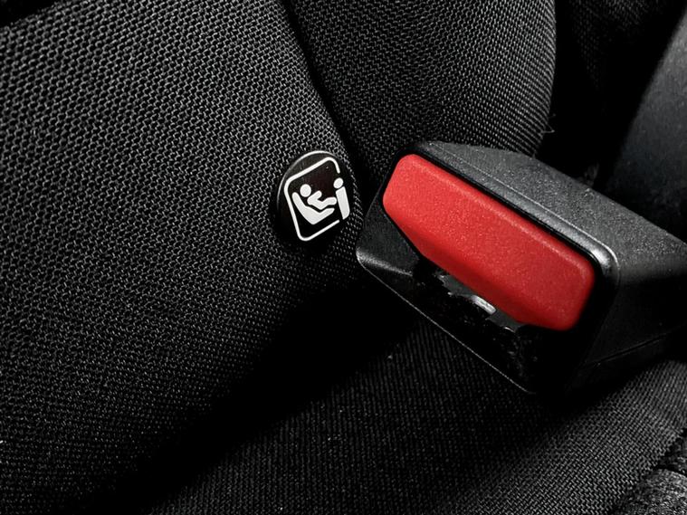 - ISOFIX mounting on outer rear seats with top tether and labels indicating fixing points