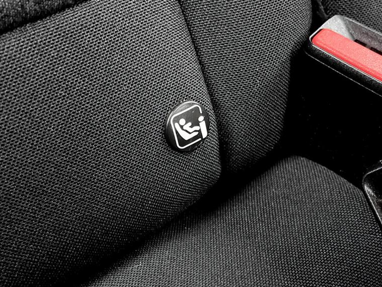 - ISOFIX mounting on outer rear seats with top tether and labels indicating fixing points