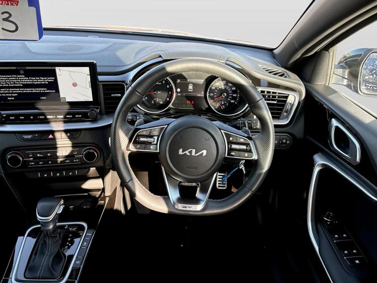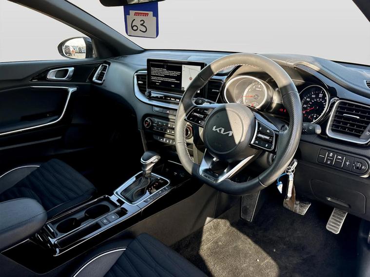 This 2025 Kia Ceed GT Line stylish hatchback is equipped with a 1.5 litre petrol engine, meeting Euro 6 emission standards. Inside, you'll find a heated steering wheel and heated front seats for added comfort, complemented by striking LED headlights. Further enhancing its appeal, this Ceed comes equipped with some fantastic features such as 17" GT-Line alloy wheels, Speed sensitive auto door locking, Steering wheel mounted controls, Auto dimming rear view mirror, Automatic headlights control, 10.25" touchscreen satellite navigation, Drive mode select (Normal and Sport) and Intelligent Stop and Go. Not only does this vehicle come with some fantastic features its also comes with 7 years Kia warranty from the date you purchase the vehicle as this is one of our Kia approved vehicles that has been inspected by Kia trained technicians so you feel as reassured as if you were buying a brand new car. All Kia approved vehicles are hand picked and all Kia Approved Used cars are less than 20 months old, have covered less than 20, 000 miles and still in prime condition. The Kia Ceed T GDi GT Line stands out with its impressive acceleration, reaching 0 to 62 miles per hour in just 9.7 seconds, demonstrating its responsive performance. Its large boot space provides excellent practicality for everyday needs and longer journeys. Furthermore, this model benefits from a low insurance group, making it an economical choice for many drivers.