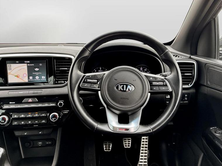 - D-Shaped sports leather steering wheel and perforated inserts with GT-Line logo