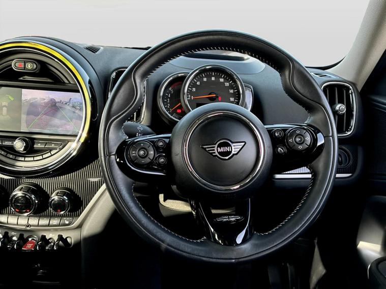 - MINI Yours fine walk nappa leather steering wheel with contrast stitching in silver and MINI Yours badge