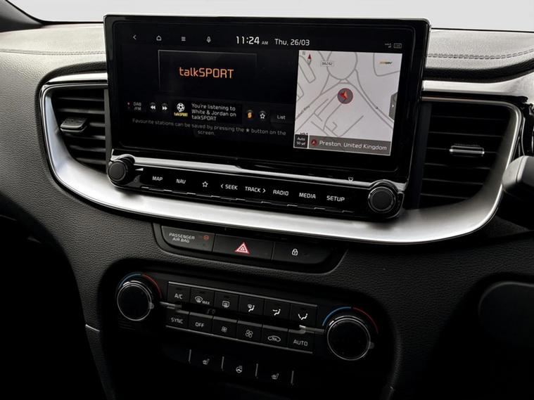 This 2025 Kia Ceed T GDi GT Line presents an exceptional opportunity with an astonishingly low mileage of just 77 miles, making it practically new. This Euro 6 compliant model boasts a 1.5 litre petrol engine and is registered in 2025, featuring the desirable GT Line trim. Kia's outstanding 7 year, 100, 000 mile warranty will run until 28th May 2032, and it has had only one owner. Inside, you'll find comfort and convenience with heated front seats and a heated steering wheel, while the LED headlights ensure excellent visibility. The Kia Ceed T GDi GT Line offers a compelling driving experience, highlighted by its brisk acceleration from 0 to 62mph in just 9.5 seconds. This performance, combined with its low insurance group and generous boot space, sets it apart from other vehicles in its class. These factors indicate a vehicle that is not only economical to run but also practical for everyday use and enjoyable on the road.