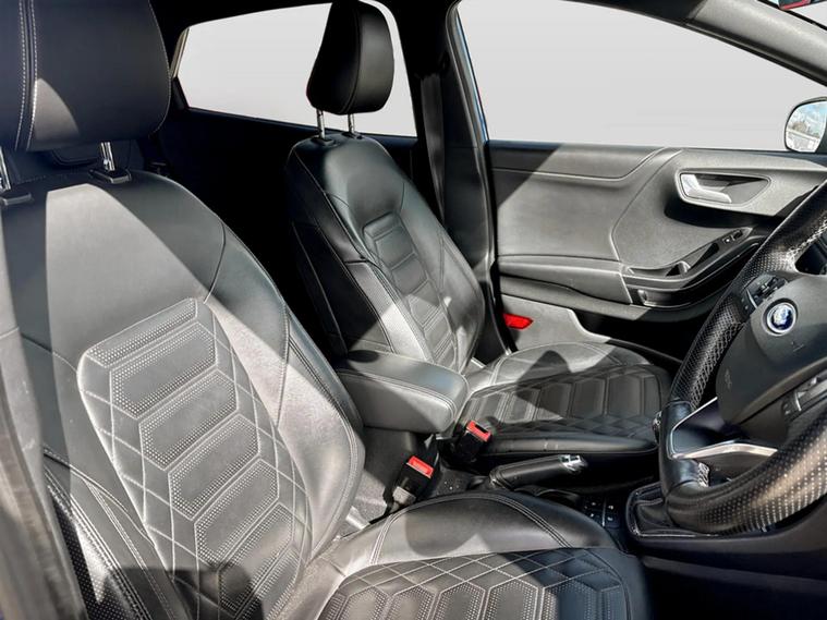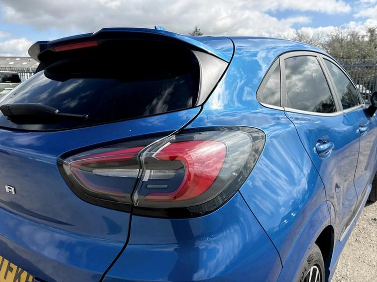 This 2020 Ford Puma ST-Line Vignale stylish vehicle is equipped with a 1.0L petrol engine and meets Euro 6 emissions standards. Notable features include Speed Sign Recognition to help you stay aware of speed limits, a Driver Impairment Monitor for added safety, and Fixed LED Signature Headlamps for clear visibility. Further enhancing its appeal, this Puma comes equipped with some fantastic features such as Keyless entry and power start button, Pedestrian/cyclist detection & post-collision braking, Automatic rain sensing wipers, Automatic headlights with auto high beam, Front and rear parking sensors and Ford megabox extended bootspace. Experience impressive performance with this Ford Puma, achieving 0-62mph in just 8.9 seconds. This model also boasts a fuel economy of 50 mpg, indicating it is more economical than many similar vehicles. Furthermore, its low CO2 emissions highlight its efficiency and environmental consideration, making it a smart choice for your next car.