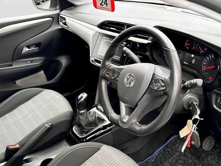 - 3 spoke flat bottomed leather effect steering wheel with satin chrome effect bezel