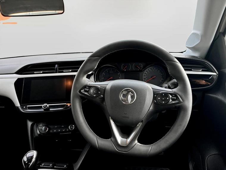 - 3 spoke flat bottomed leather effect steering wheel with satin chrome effect bezel