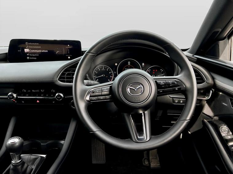 MAZDA APPROVED USED CAR + FULL SERVICE HISTORY + MAZDA WARRANTY + BOSE AUDIO + 140bhp HYBRID ++ This stunning Mazda 3 Exclusive-Line hybrid has covered only 12k miles. As you would expect with such low miles, the car is in excellent condition inside and out. It comes with a huge list of features, 2 keys, and all the benefits of the Mazda Approved used car programme + + Mazda have made it easier than ever to get into the driver's seat of the Mazda you want. The Mazda approved used car programme offers a range of benefits to help you get on the road and give you total peace of mind. These include: a Mazda a multi point vehicle inspection, an independent vehicle history and mileage check, MOT Protection (up to a maximum of £750), driveaway insurance with excess return (up to £250), a 12 month Unlimited Mileage Mazda Warranty, and European Roadside Assistance and accident aftercare. ++