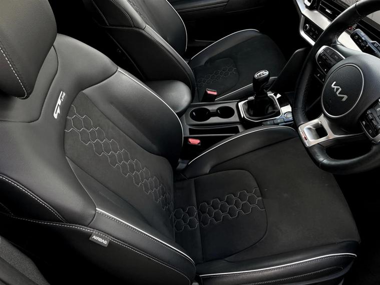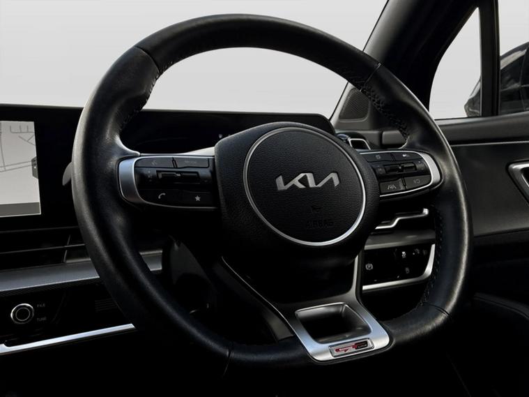 - D-Shaped sports leather steering wheel and perforated inserts with GT-Line logo