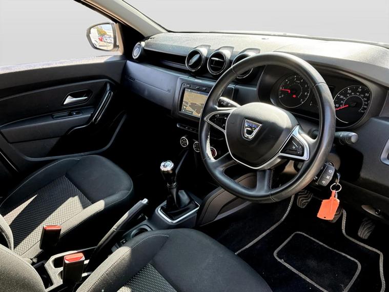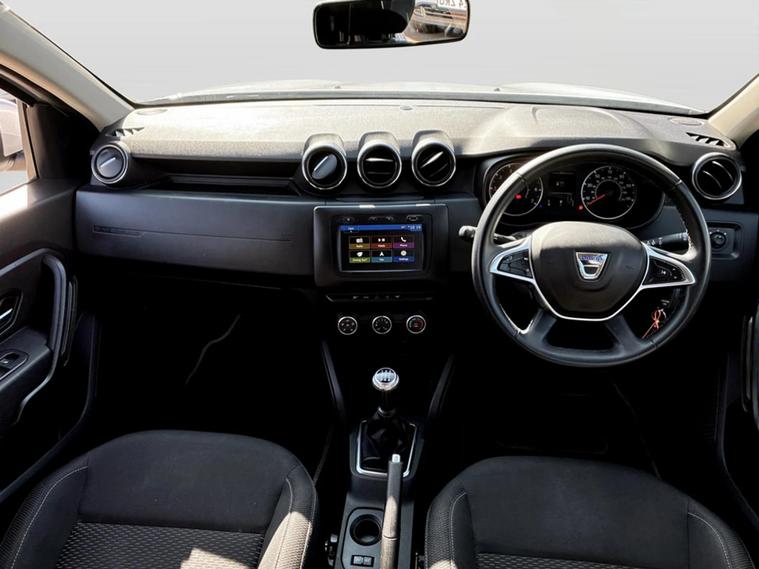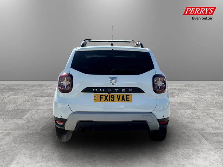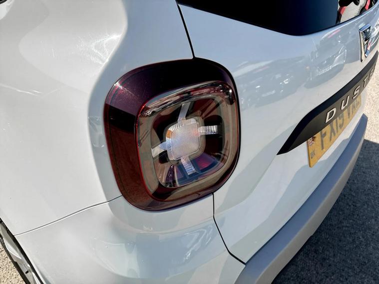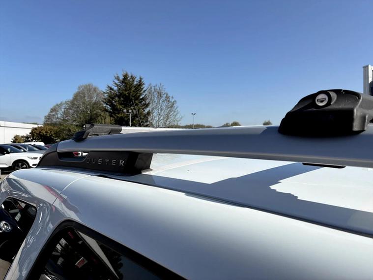 - Tailgate trim with satin chrome Duster inscription in black background