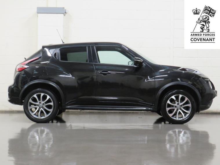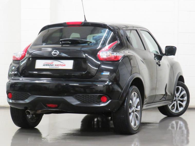 Arrow Motor Company are pleased to present this fantastic Nissan Juke Tekna, finished in the stunning Metallic Black Paintwork, with Matching Black Leather Interior. Equipped with Nissans 1.5-Litre Diesel Engine capable of producing 108bhp whilst providing the most economical of drivers with a highly respectable 70.6mpg, with potential to rise to 74.3mpg in Extra-Urban environments. This Particular Example is Complimented by a Comprehensive Service History and only 20 Tax. This vehicle also benefits from the following impressive list of features, , ...Interior Features... Satellite Navigation System | 5.5 Inch Multimedia Touchscreen Display | Rear Parking Camera Display | Birds Eye View 360 Parking Cameras | 3x Adjustable Full Black Leather Contrast Stitched Front Seats | Heated Front Seats | Cruise Control | Speed Limiter | Climate Control with Digital Display | Bluetooth Telephone and Media Streaming | Sport Display | ECO Display | Front and Rear Electric Windows | 6x Speaker System | CD Player | AUX / USB Input | Multifunction Leather Steering Wheel | Eco Stop/Start System | Sport Mode Display | Eco Mode Display | Electrically Adjustable Folding Wing Mirrors | Tyre Pressure Monitoring System | Leather Gear-Shifter | Glovebox Storage | Multifunctional Trip Computer | ISOFIX | 2 Cupholders | Central Locking | Traction Control | 12V Socket, ... Exterior Features... 17-Inch Metallic Grey 10-Spoke Diamond Cut Alloy Wheels | Rear Parking Camera | LED Day Time Running Lights | Rear Privacy Glass | Wing Mirror Mounted Indicators | Body Coloured Wing Mirrors | Body Coloured Roof | Body Coloured Door Handles | Front Fog Lights | Electric Windows |