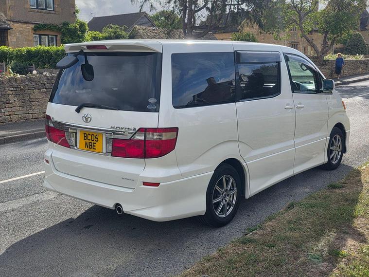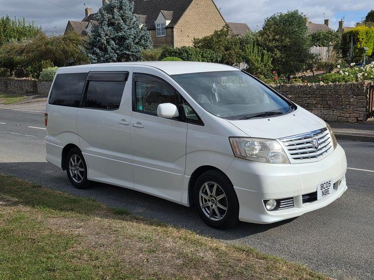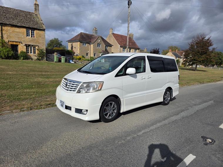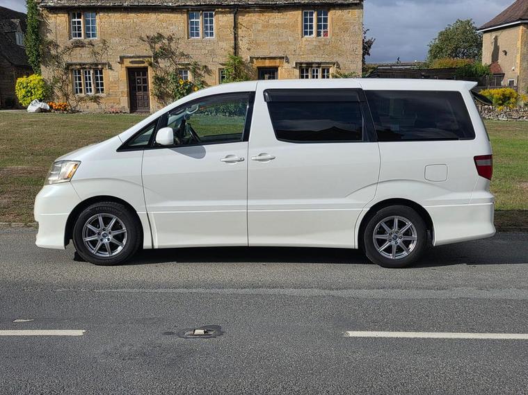 TOYOTA ALPHARD 3.0 MS PREMIUM 03/2005 8 SEATS HIGH GRADE 63, 757 MILES GRADE STOCK NUMBER W18-982, Imported by us and sold to a lovely couple who unfortunately got some life-changing news not long after purchasing, meaning the car was no longer required, they part-exd it for an IQ we had in stock that was more suited to their needs. This is the undisputed king of people carriers in Japan, and this is a luxury spec model with 8 seats. It will make a gorgeous family vehicle. This is the Premium Version in the sports body style with premium aftermarket alloy wheels, 4 automatic electric windows with auto window closure on remote, Remote central locking, HID headlamps, Black limo glass. LOADED WITH SPECIFICATIONS INCLUDING:, * PEARL WHITE (042), * 8 LUXURY SEATS (ROTATING) IN GREY WITH ALCANTARA CENTRES, * SWIVEL PASSENGER SEAT ADDED, * AFTER MARKET ALLOYS, * PIANO BLACK WOOD-LOOK DASH/WOOD STYLE TRIM, * REMOTE CENTRAL LOCKING WITH TOTAL CLOSURE FEATURE, * BOTH POWER REAR DOORS, * 4 AUTO ELECTRIC WINDOWS, * SOFT-CLOSE REAR DOORS, * CLIMATE CONTROL FRONT AND REAR, * FOLDING ELECTRIC MIRRORS, SERVICE INCLUDING, * OIL FILTER, * OIL CHANGE, * AIR FILTER, * POLLEN FILTER, * CAMBELT CHANGE, * MPH CONVERSION BY CHIP, * BAND EXPANDER TO GET UK FM STATIONS, * LED FOG LAMPS IN REPLACEMENT TO REAR REFLECTORS IN REAR BUMPER, If its not exactly what you want we have Estimas, Serenas, Elgrands, more Alphards and others on the way from Japan all the time, email your requirements, Trade or Retail. Call 01386263679 or email sales dealer's website