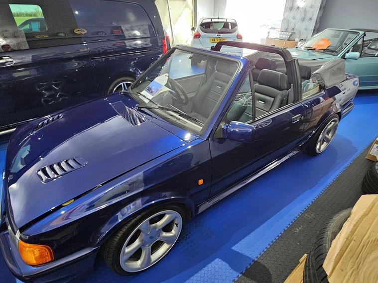 For Sale: Ford Escort XR3i SE500 Cabriolet The Ultimate Collectors Example , One of Only 500 Limited Edition Models , Finished in Rare Pacifica Blue Metallic , Full Restoration Showroom Condition , Upgraded Pioneer Sound System , RS Turbo Engine Upgrade , Full Custom Leather Recaro Interior with rear headrests and blue contrast stitching , This Ford Escort XR3i SE500 Cabriolet is a true collectors gemone of just 500 Special Edition models ever built. Unofficially known as the All Blue or SE500, every example was finished in Pacifica Blue Metallic with a matching full-leather interior. This particular car stands out even further, having been upgraded with: , Full Leather Recaro Interior with rear headrests and blue contrast stitching , Complete Interior Retrim with blue stitching threw out , Full Exterior & Underside Restoration, including a full respray , Brand-New Hood with cover, New 17 inch Cosworth wheels wrapped in new tyres, New Suspension sits lovely , Roof Hydraulics fully gone threw, 4 inch rounded tip mongoose stainless exhaust system, JBL audio subs 1100 brand new, Rockford rear speakers, pioneer p9000-r dolphin stereo 500, under the bonnet is just as impressive, Unlike most SE500s, which were registered in 1990 with a G plate, this example is a rare 01 August 1990 H plate, making it one of the very last off the production line. The Ultimate XR3i SE500 Restored, Enhanced & Ready to Thrill, This isnt just a restorationits a reimagination of what the XR3i SE500 should have been. When the previous owner took on this meticulous rebuild, they didnt just restore it to factory spec; they took it further, adding the upgrades every Ford enthusiast would have wanted back in the 90s. RS Turbo engine upgrade A powerhouse transformation delivering an exhilarating driving experience. Ultra-rare RS steering wheel Retaining the original for purists. High-end Pioneer sound system Over 1, 500 spent crafting the ultimate in-car audio experience. Original Dolphin colour screen CD player A nostalgic touch that defined the era. This SE500 is more than a collectors pieceits a time machine to the 90s, packed with the dream upgrades every XR3i fan wished for. A True Enthusiasts Opportunity , Originally, we intended to keep this car in our private collection, but we believe these cars deserve to be driven and appreciated. Thats why were offering you the chance to own what we confidently call the best SE500 available today. 18, 495 , We understand this is not the cheapest SE500 on the market, but we welcome any serious buyer to first view the only other SE500 to come up for sale in the last six monthswhich requires a full rebuildbefore inspecting this one. The difference speaks for itself. RAC-Approved Dealer Benefits Included , Why Buy From Us? , RAC-Approved Dealer Buy with confidence , Free RAC Breakdown Cover & History Check , 12 Months MOT & Full Service Included , Nationwide Delivery Available , Call 01406223583 for more information (even out of hours). Feel free to contact us anytime to discuss this vehicle further. This is a rare chance to own an SE500 in better-than-showroom conditiondont miss out!