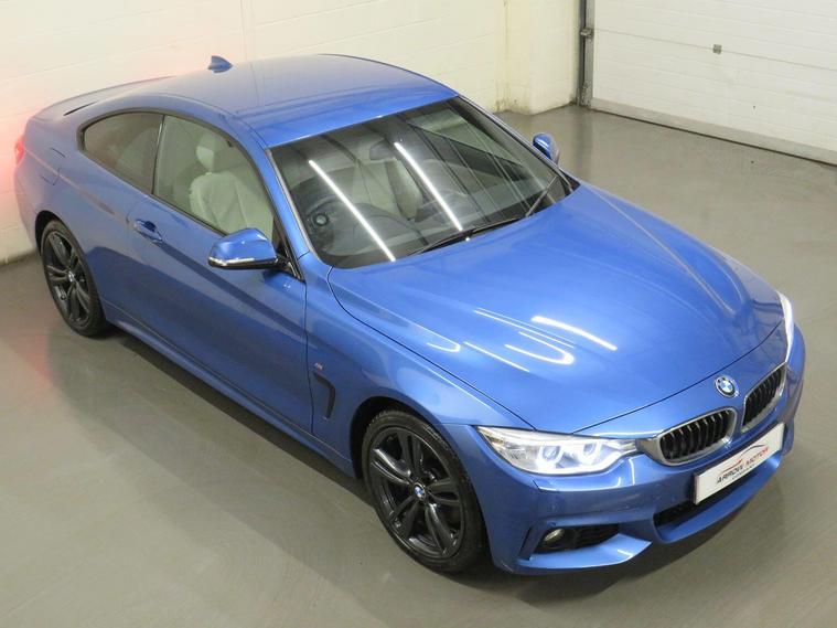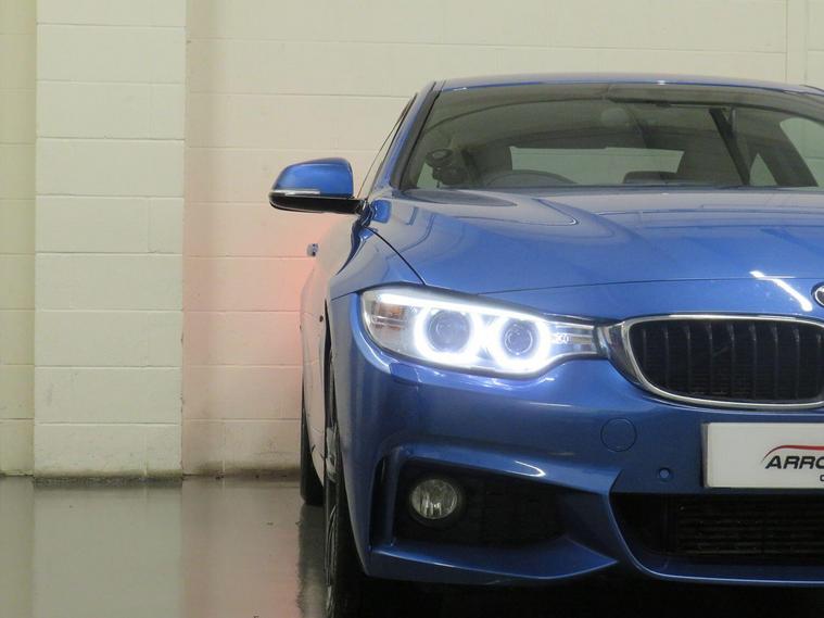 Arrow Motor Company are pleased to present this fantastic BMW 420d M-Sport xDrive Coupe, Finished in Estoril Blue Metallic Paintwork, with contrasting Oyster Dakota Leather. This car is equipped with BMWs award Winning 2.0-Litre Diesel Engine producing 187bhp whilst providing the most economical of drivers with a highly respectable 60.1mpg, with potential to rise to 68.9mpg in Extra-Urban environments. This particular example is complimented by a Comprehensive Service History. This vehicle also benefits from the following impressive list of features, , Optional Extras, -M-Sport Plus Package consisting of 19-inch Alloy Wheels, M-Sport Braking System, Harman Kardon Surround Sound, and Rear Privacy Glass , -Seats - Front Electric Adjustment with Driver Memory, -Interior Trim - BMW Individual - Piano Black, -High-Beam Assistant, -Interior Comfort Package (Split Fold Rear Seats, Extended Storage, Sliding Armrest), Interior Features, Professional Media - Satellite Navigation | Keyless Start | Heated Front Sports Seats with Electric Width Adjustment | Fully electric Front Seats with Driver Memory Harman/Kardon Surround Sound System | Bluetooth with Media Streaming | Cruise Control With Brake Function | Speed Limiter | Air Conditioning With Dual Climate Control | DAB Digital Radio | CD Player | AUX & USB Connectivity | BMW Drive Performance Control (Eco Pro, Comfort, Sport, Sport+) | Sport Displays | Ambient Lighting - Switchable BMW Classic Orange / Cold White LED | SOS Emergency Button | Piano Black With Peral Chrom Dashboard Finisher | M Sport Multifunction Leather Steering Wheel With Paddle Shifters | Anthracite Headlining | Floor Mats Velour | Interior Mirror With Automatic-Dim | Tyre Pressure Monitor | Rear Armrest | M Designation Door Sills | ISOFIX | Intelligent Emergency Call | Central Locking | 2 Cupholders | 12V Plug |, Exterior Features, 19-inch Alloy Wheels Finished in Orbit Grey | M-Sport Braking System | Front & Rear Parking Sensors with iDrive Radar Display | Xenon Headlights with High Beam Assist| Gloss Black Side Air Breathers | Angel Eye Daytime Running Lights DRL | LED Taillights | Front Fog Lights | Electrically Adjustable Side Mirrors | M Aerodynamic Body-styling | M Sport Suspension | Side Mirror LED Indicators | Privacy Glass | Automatic Headlights | Automatic Window Wipers | Electric Boot Release | Shark Fin Aerial |