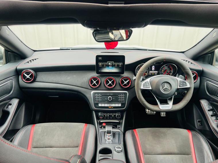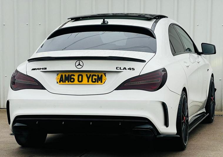 Here at NYA auto sales we have this beautiful Mercedes-Benz CLA 2.0 CLA45 AMG Coupe SpdS DCT 4MATIC Euro 6 (s/s) 4dr for sale, Very very well looked after vehicle, drives like new with no issues at all , This vehicle benefits from full service history mostly from main dealer and FULL recent service carried out at current mileage that includes front and rear discs and pads, Water pump and auxiliary belt replacement, Full DSG gearbox oil and oil filter, engine oil and oil filter, Modifications include, 2000 star lights including shooting meteors , scorpion down pipe, MST cold air intake system, stage 1 with pops and bangs, wheel spacers and carbon fiber all around , Huge spec including AMG gear shifter knob, full panoramic roof, AMG Performance Exhaust with AMG active exhaust button, AMG Exterior Carbon-Fibre Trim Package , AMG Carbon-fibre Exterior Mirror Housings, AMG MATTE black alloys, Brake Calipers - Painted Red, 8 in color display, AMG Aerodynamics Package, android auto, apple car play and much more, As an AA approved dealer all of our vehicles are prepared to AA standards. We provide 3 months nation wide warranty thats extendable, 12 MONTHS free AA breakdown cover, 12 months MOT upon request , At NYA Auto Sales, we dont just sell cars we deliver confidence on every drive. Every vehicle is carefully inspected, professionally maintained, and backed by warranty options designed to give you peace of mind. Quality vehicles, transparent deals, and customer service that goes the extra mile, thats our promise. Reserve this car today for a fully refundable 99 deposit.!