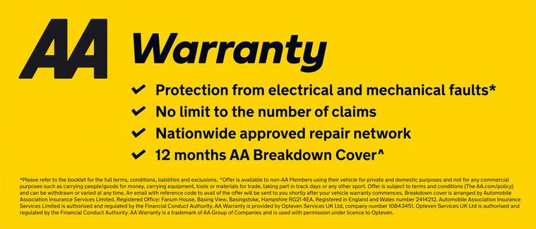 AA Car Finance is provided by Evolution Funding Limited. Used Car Sites Limited, on behalf of AA Financial Services Limited introduces you to Evolution Funding Limited and each are acting as a credit broker and not a lender. AA Financial Services Limited receives a commission from Evolution Funding Services for that introduction, and is not acting impartially in making the introduction. The amount of commission can vary based on the lender selected which is most appropriate for you and also the amount you borrow and the term the loan is borrowed over. You will be advised of the amount in good time before your agreement is signed. By submitting an application for finance you consent to the commission being paid and acknowledge AA Financial Services Limited is not acting impartially. Evolution Funding Limited Registered Office: Thompson Close, Whittington Moor, Chesterfield, Derbyshire, S41 9AZ. Registered in England and Wales with company number: 11354996 | Data Protection No: ZA481166 | VAT No: GB 315630330. Evolution Funding Limited are authorised and regulated by the Financial Conduct Authority, Registered No: 823324. Evolution Funding Limited are a credit broker and not a lender. Evolution Funding Limited work with a panel of lenders from whom they will receive financial remuneration which may be based on a fixed fee or a percentage of the amount you borrow, varying by lender, the amount you borrow and the term the loan is borrowed over and will impact the amount payable by you. AA Financial Services Limited and Evolution Funding Limited will disclose the commission to be received from the finance company prior to the order of the vehicle. This may be at point of finance proposal or once the order is placed. This may vary subject to the lender/finance company. AA Car Finance and AA Cars are trading names of Used Car Sites Limited (registered in England and Wales number 4546950), a credit broker and not a lender. Used Car Sites Limited is an appointed representative of AA Financial Services Limited for credit broking purposes. AA Financial Services Limited is authorised and regulated by the Financial Conduct Authority (Ref no. 727859). Registered Office: Level 3, Plant, Basing View, Basingstoke, Hampshire, England, RG21 4HG. Registered in England and Wales number 912211. Finance subject to status. Terms and Conditions apply. A guarantee may be required. Over 18s only. PLEASE ENSURE YOU CAN AFFORD THE REPAYMENTS FOR THE DURATION OF A LOAN BEFORE ENTERING INTO A CREDIT AGREEMENT.