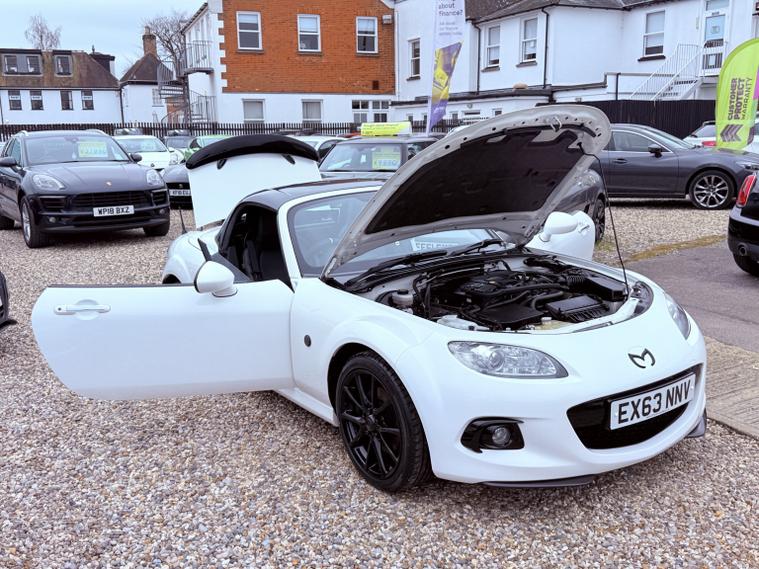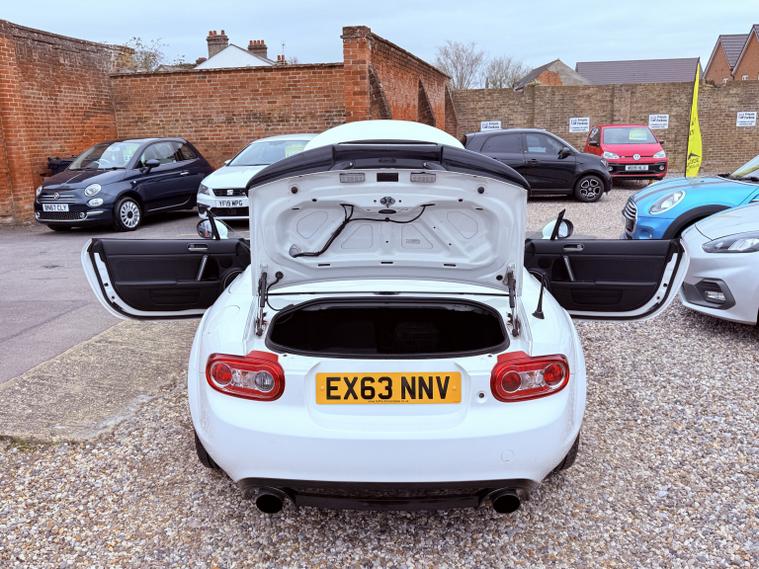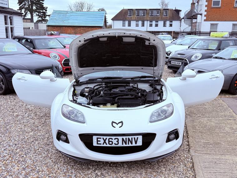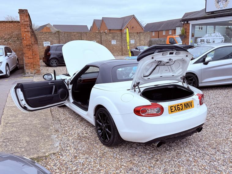 Sporty 2013 (63) Mazda Mx-5 2.0 Roadster Coupe Sport Tech, 2.0 Petrol, 6 Speed Manual, 2 Door Cabriolet With Electric Folding Hard Top, Finished In Metallic White With Contrasting Black Alloy Wheels & Roof, Subtle Modifications Including Upgraded Touch Screen Radio With USB Connectivity, Alcantara Steering Wheel, Custom Tony Banks Exhaust System, Rear Boot Spoiler & Rear Bumper Diffuser, Good Standard Spec Including Black Leather Interior With 5 Stage Heated Front Seats, Cruise Control, Bluetooth, Powerful Bose Speaker System, Electric Windows And Door Mirrors, Remote Central Locking And More, Good Service History With 8 Records (Last Serviced @ 62, 771 Miles), 4 New Tyres & New Battery Fitted 10/03/2026, MOT Expires 03/08/2026, Supplied With 2 Keys, Same Owner Since 22/03/2019, 3 Months Engine And Drivetrain Warranty With Options To Extend, ULEZ Compliant, Finance Available, HPI Clear, AA Approved Dealer, 12 Months Breakdown Cover Free Of Charge, Driveaway Insurance Available, All Of Our Cars Are Supplied With A Workshop Inspection Including MOT & Service If Required Plus A Full Valet, Debit Card Payments Accepted, FCA Regulated Dealer, No Admin Fees, Part Exchange Welcome, Delivery Can Be Arranged For An Additional Fee, Sunday Viewings Available By Pre Arranged Appointments, dealer's website Please Note We Also Offer A Wide Range Of Mx-5 Tuning & Modifications From Our Good Friends At BBR And MX5 Parts, Please Ask For More Details.