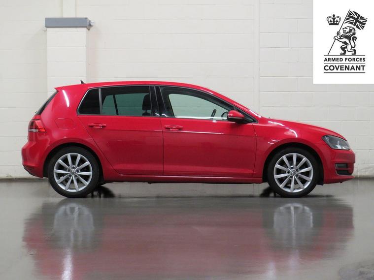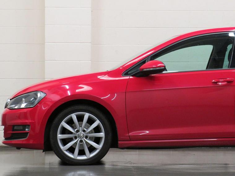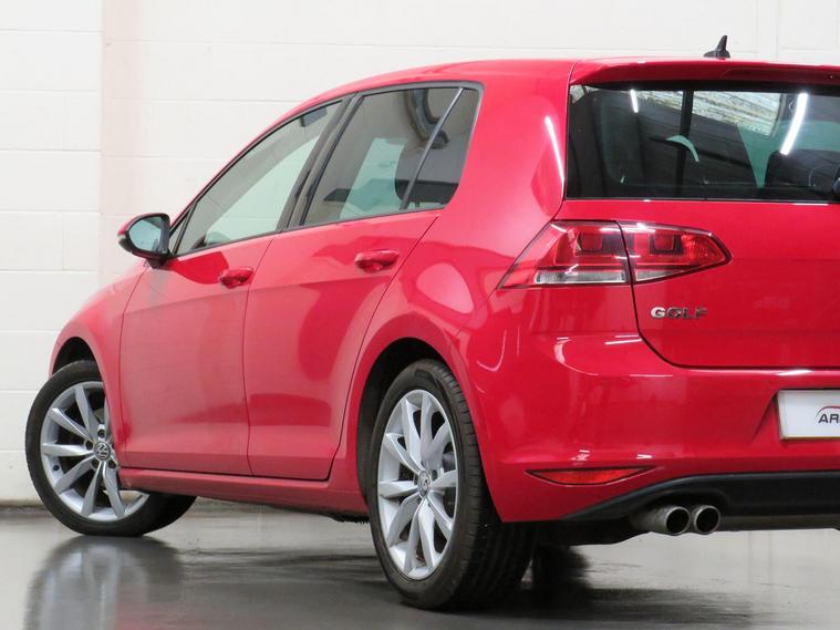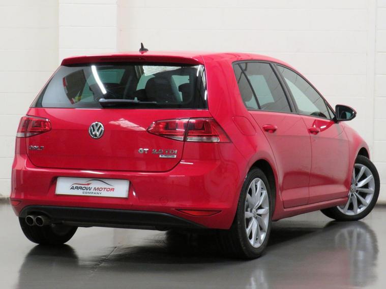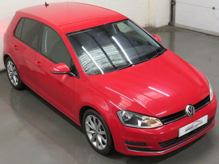 Arrow Motor Company are pleased to present this fantastic Volkswagen Golf BlueMotion Tech GT DSG, finished in the stunning Gloss Tornado Red Paintwork with a Contrasting Titan Black Partial Alcantara Interior. Equipped with Volkswagens 2.0-Litre Diesel Engine capable of producing 148bhp whilst providing the most economical of drivers with an incredible 62.8mpg, with potential to rise to 68.9mpg in Extra-Urban environments. This Particular Example is Complimented b Full Service History (FSH) which includes a recent Timing Belt Change. This vehicle also benefits from the following impressive list of features:, , Interior Features, Satellite Navigation | Touch Screen 6-Inch Digital Composition Media System Display | Active Cruise Control | Front and Rear Ultrasonic Parking Sensor Display | 6x Speaker System | Bluetooth with Media Streaming | Air Conditioning | DAB Digital Radio | Automatic Headlight Switch | Front and Rear Electric Windows | Eco Stop/Start System | Eco Mode | Sport Mode | Multifunctional Trip Computer | AUX and USB Input | Electronically Adjustable Folding Heated Wing Mirror Controls | Partial Alcantara Height Adjustable Bolstered Front Comfort Seats | Tyre Pressure Monitoring System | Driving Data Display | Think Blue. Trainer. | Vehicle Status Display | Battery Regenerative Technology | CD Player | Illuminated Front Vanity Mirrors and Front and Rear Reading Lights | Leather Stitched Multifunctional Flat Bottom Steering Wheel | Leather Gear-Shifter | Glovebox Storage | ISOFIX | 2x Cupholders | Central Locking | Traction Control | 12V Socket |, Exterior Features, 17-Inch 10-Spoke Metallic Silver Alloy Wheels | Front and Rear Ultrasonic Sensors | Daytime Running Lights | Adjustable Boot Floor | Wing Mirror Mounted Indicators | Rear Privacy Glass | Heated Rear Windscreen | Chrome Lined Front Grill Louvre | Cherry Red Rear Reflectors | Shortened Aerial Antenna | Twin Exhausts | Body Coloured Door Handles | Body Coloured Wing Mirrors | Body Coloured Roof |