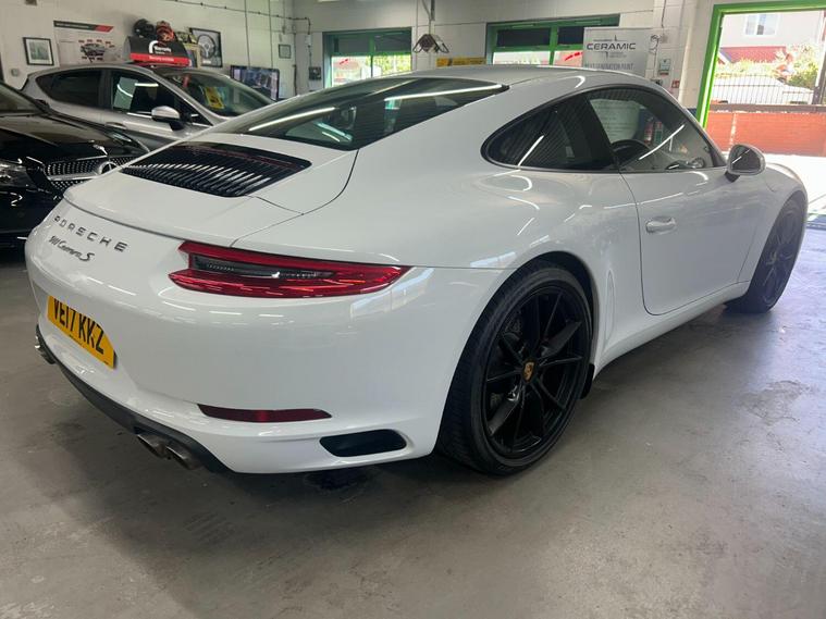 One owner example in Carrera White Metallic, PDK Gearbox, Rear Axle Steering, Satin Black Wheels.