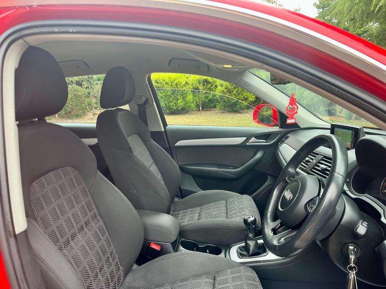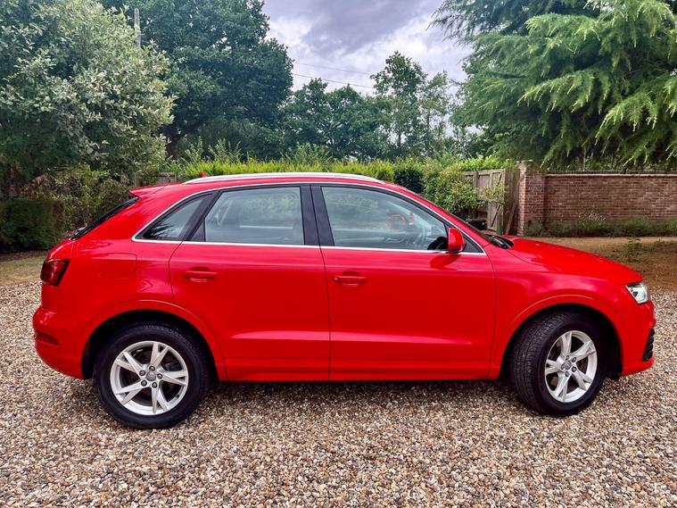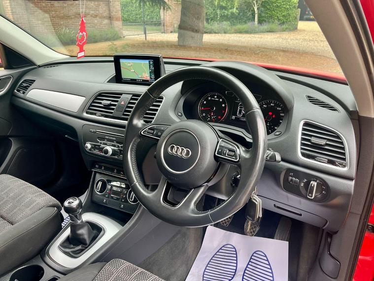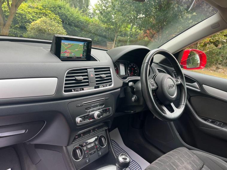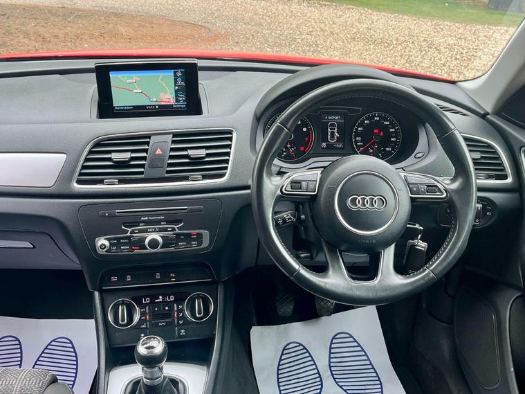 THIS STUNNING 1 FORMER KEEPER, PETROL AUDI Q3 1.4 TFSI CoD Sport, Euro 6 comes in Misano red, pearl effect WITH CLOTH SEATS AND THE ADDED BONUS OF A SATNAV. IT HAS FULL SERVICE HISTORY, JUST SERVICED AND MOTD. Excellent bodywork, Interior - Excellent Condition, 5 seats, Red, 2 owners, Upgrades - Pearl effect paint550, Audi Parking System Plus325, Auto-dimming rear-view mirror295, Electric lumbar support195, Standard Features - 17in Alloy Wheels - 7J 5-Spoke Y Design, 4-Way Electric Lumbar Support for Front Seats, 6.5in Colour Display Screen, 8 Passive Speakers, AMI - Audi Music Interface, Aluminium Roof Rails, Aluminium Window Trims, Anti Theft Locking Wheel Bolts, Audi Drive Select, Bluetooth Interface, Body Coloured Door Mirrors, Cloth Headlining, Concert Radio, DAB Digital Radio, Door Sills with Aluminium Inlays, Driver - Front Passenger - Front Side and Head Airbag System, Drivers Information System - DIS, Dual-Zone Electronic Climate Control, Dynamic Suspension, Efficiency Program in the Drivers Information System - DIS, Electric Windows - Front and Rear, Electromechanical Parking Brake, Electromechanical Power Steering - Speed-Sensitive Provides a Precise Steering Feel at High Speeds and Excellent Assistance when Parking. Electronic Stability Programme - ESP includes ABS-EBD-ASR-EDL, Extendable Luggage Compartment Cover, First Aid Kit, Floor Mats - Front and Rear in Velour, Front Centre Armrest, Front Lip and Rear Diffuser in Grey, Front and Rear Fog Lights, Full Body-Colour Paint Finish, Heated Windscreen Washer Jets, ISOFIX Child Seat Mounting, Inlays - Micrometallic Flex Silver, Light and Rain Sensor, Rear Parking Sensors, Remote Central Locking, Reversible Luggage Compartment Floor, Satellite Navigation System - SD Card Based, Seat Belt Monitoring, Secondary Collision Brake Assist, Space Saver Spare Wheel, Split-Folding Rear Seats, Sport Bodystyling, Steering Wheel - 3-Spoke Leather-MultiFunction-Q-Design, Steering Wheel - Height and Reach Adjustable, Thatcham Category 1 Alarm and Immobiliser, Tool Kit and Car Jack, Tow Bar Bracket Preparation, Tyre Pressure Loss Indicator, Voice Control System, Warning Triangle, Washer Fluid Level Indicator, Windscreen with Sunband, Xenon Plus Headlights with LED Daytime Running Lights, ALL CARS COME WITH WARRANTY, FINANCE AND PART EXCHANGES WELCOME, ALL VIEWINGS BY APPOINTMENT, 9995