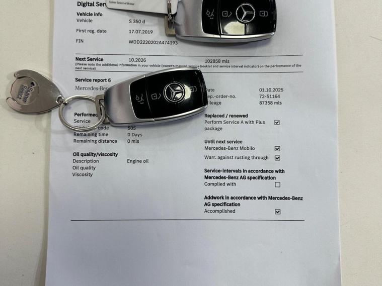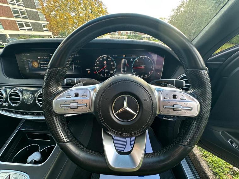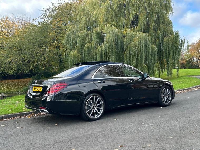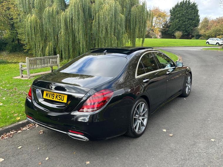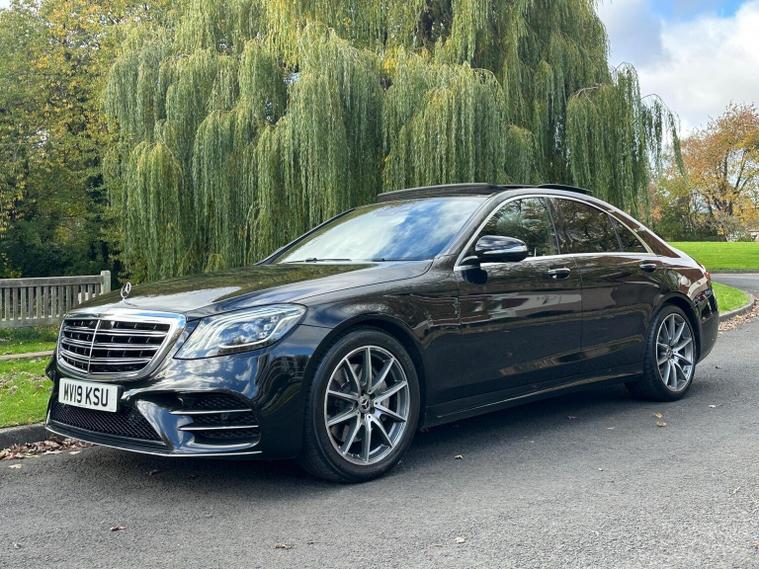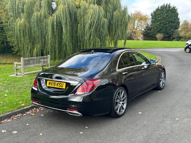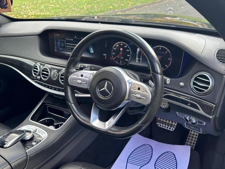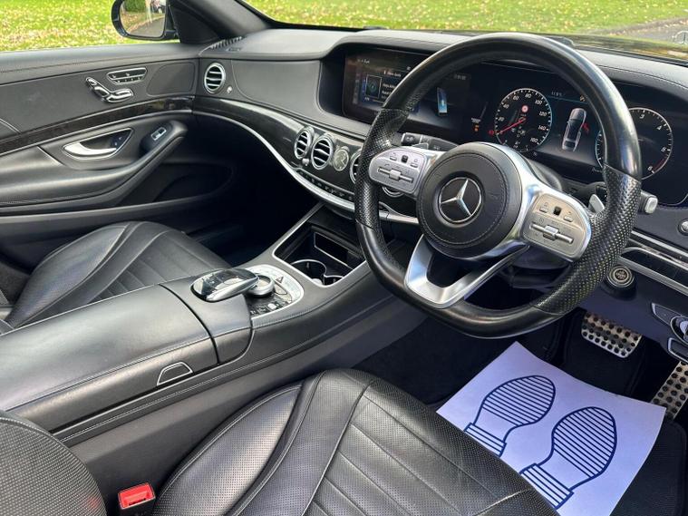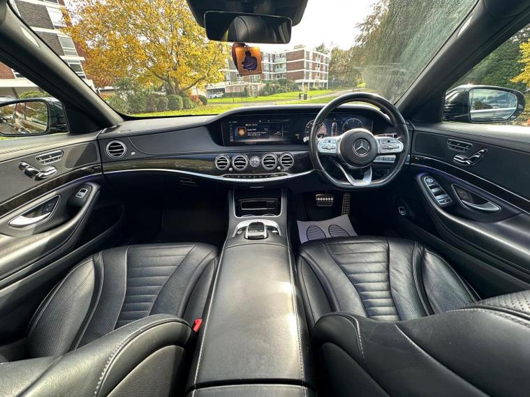BEAUTIFUL MERCEDES S CLASS IN BLACK WITH BLACK LEATHER INTERIOR, FULL MERCEDES SERVICE HISTORY, SYTNER WARRANTY UNTILL 2028, COMES WITH A HUGE SPEC, PANORAMIC ROOF, MEMORY SEATS, ELECTRIC HEATED SEATS, 360 CAMERAS, LANE ASSIST, SATELLITE NAVIGATION, VIRTUAL SCREEN, POWER FOLDING MIRRORS, STUNNING CAR IN EXCELLENT CONDITION. Experience the luxury of this 2019 Mercedes-Benz S350d AMG Line, a Euro 6 compliant vehicle that combines performance with environmental consciousness. The AMG Line trim enhances the vehicles aesthetic appeal, whilst the 2.9L diesel engine delivers a smooth and efficient driving experience. Inside, youll find a host of features designed for comfort and convenience. The Keyless Go Comfort Package, complete with Keyless Entry, allows for effortless access, while heated front and rear seats provide warmth on colder days. Manoeuvring is made easy with Active Parking Assist, including PARKTRONIC and a reversing camera. Smartphone Integration with Apple CarPlay keeps you connected on the move. The large boot space is a real plus, offering ample room for luggage or shopping. The powerful engine allows acceleration from 0-62mph in just 6.0 seconds, demonstrating its impressive performance capabilities.